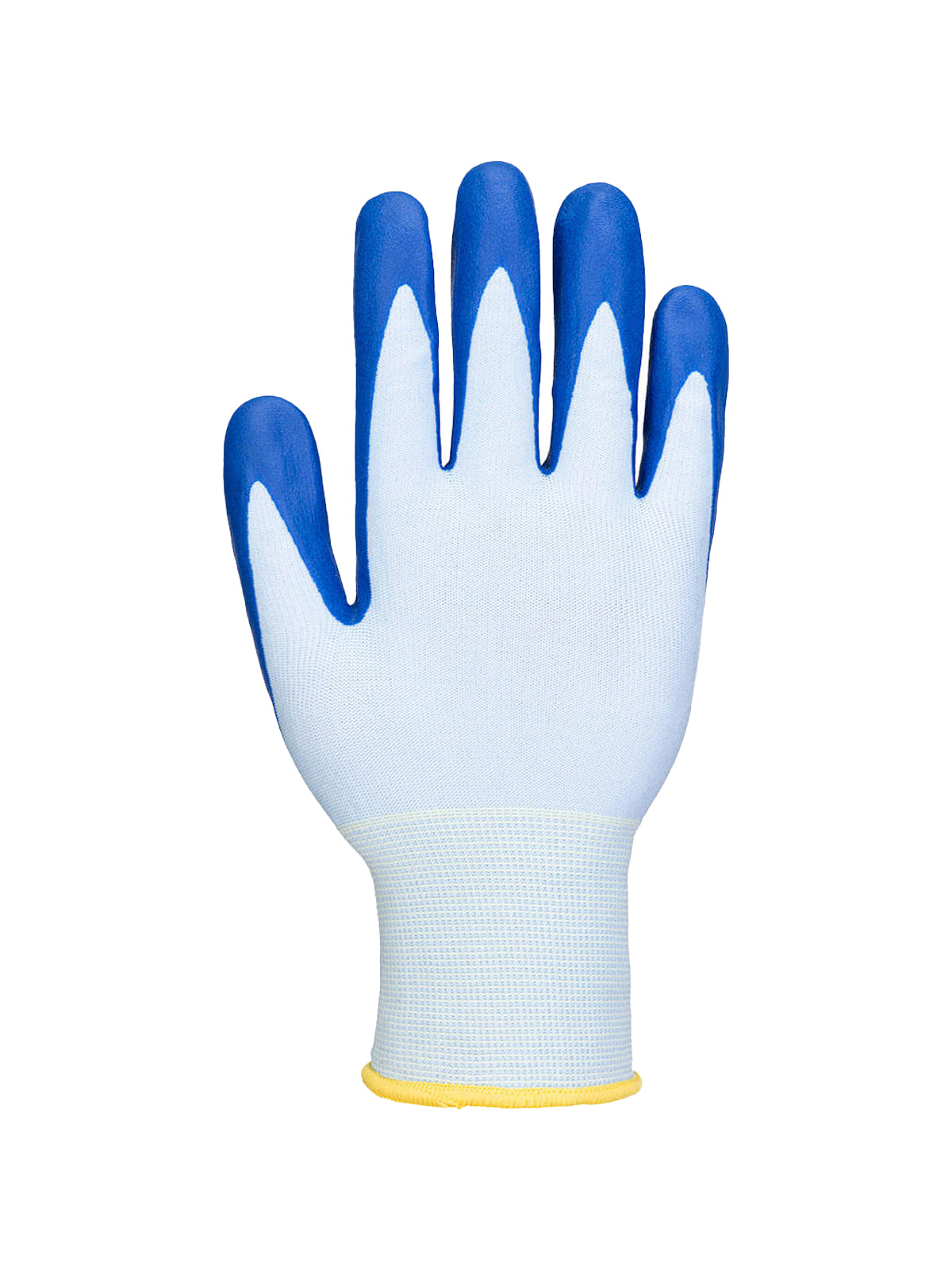 Guanto lavorato a maglia in nitrile con rivestimento in nitrile, calibro 15. Approvato per la manipolazione sicura degli alimenti.