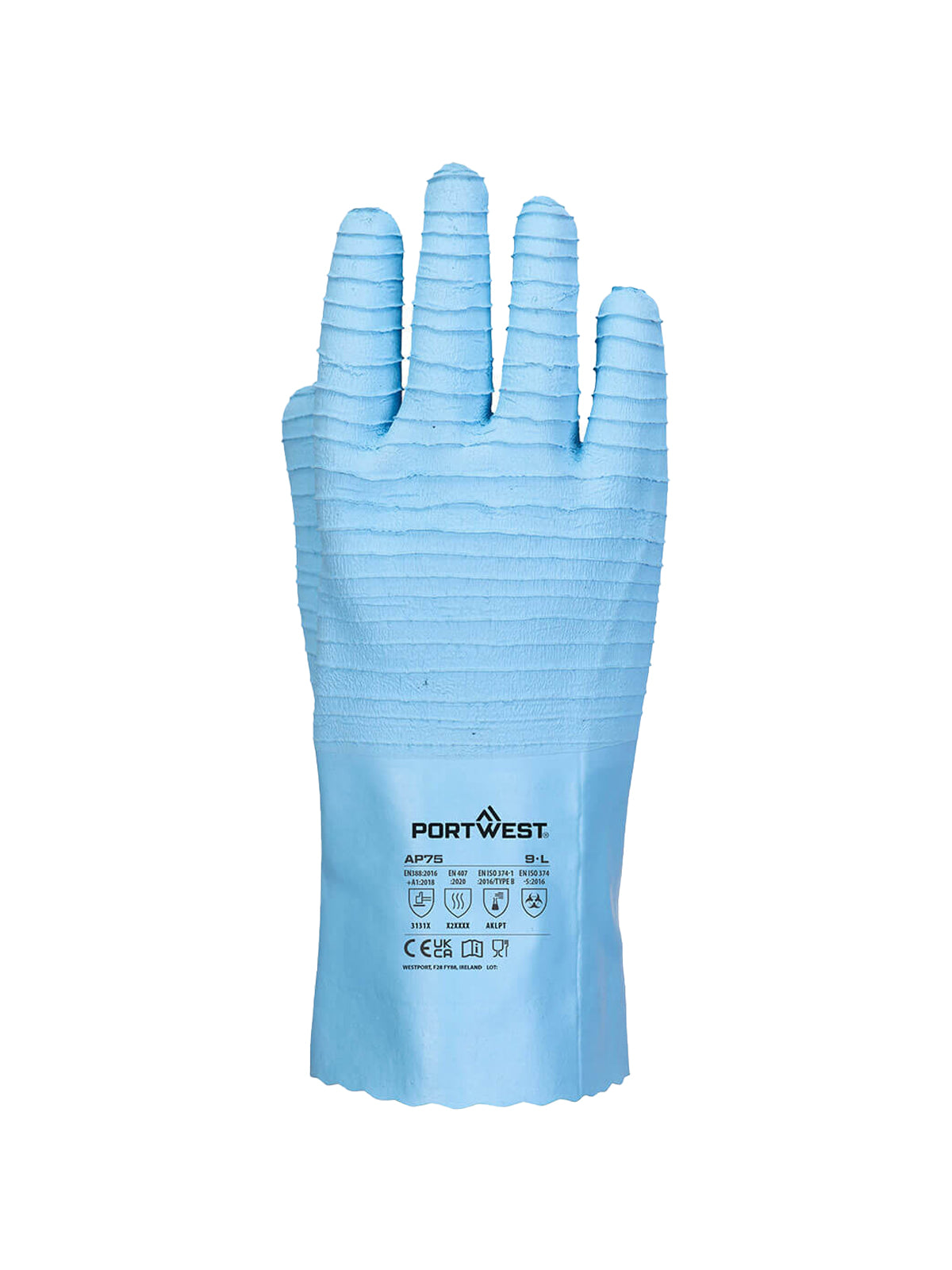 Guanto in lattice con impugnatura a pieghe per migliorare il controllo e ridurre il rischio di scivolate e cadute. Fornisce protezione dal calore da contatto fino a 250 °C per 15 secondi, progettato appositamente per l‘industria alimentare.