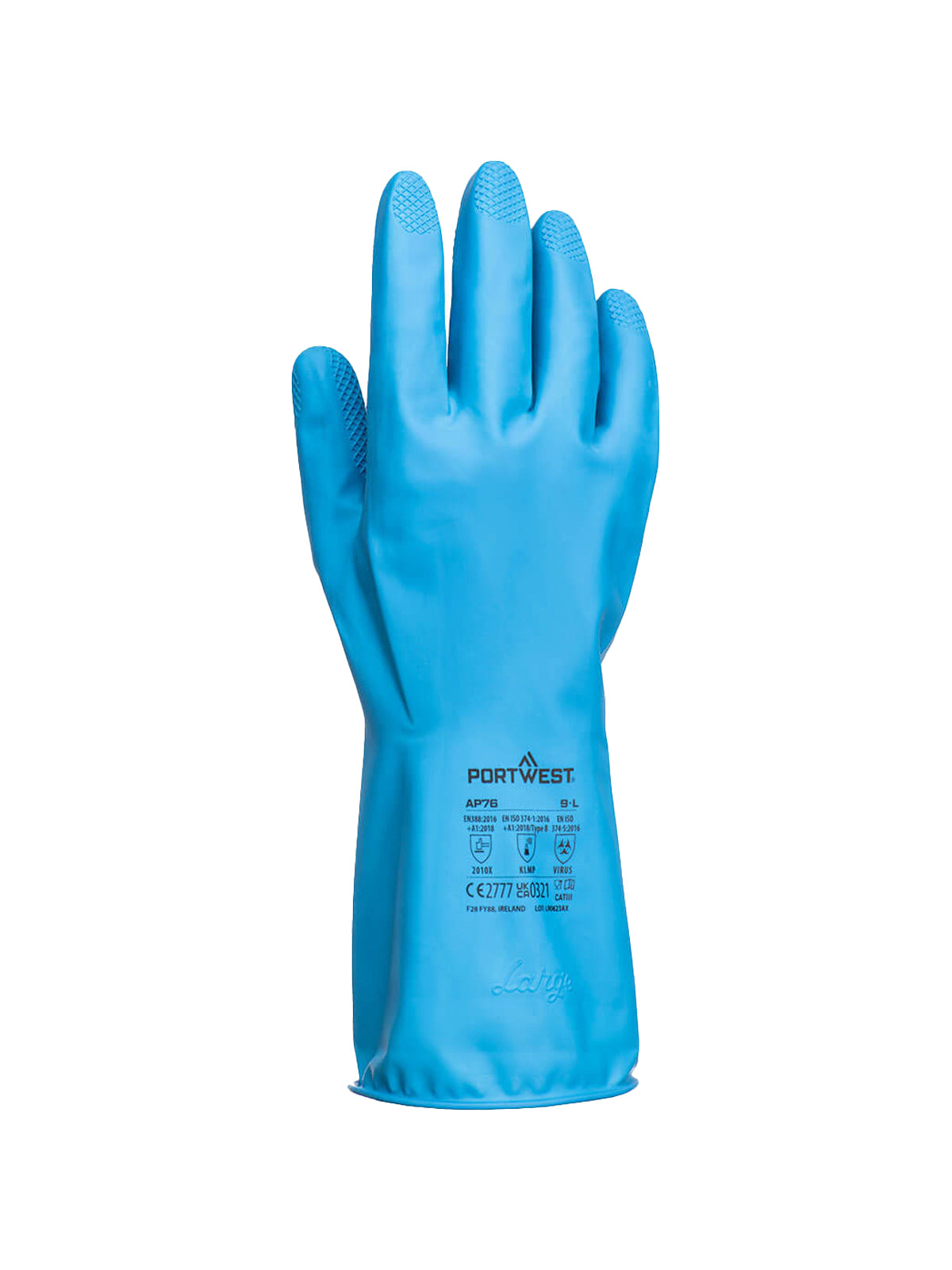 Guanto in lattice alimentare e foderati in cotone che si estende fino all‘avambraccio.