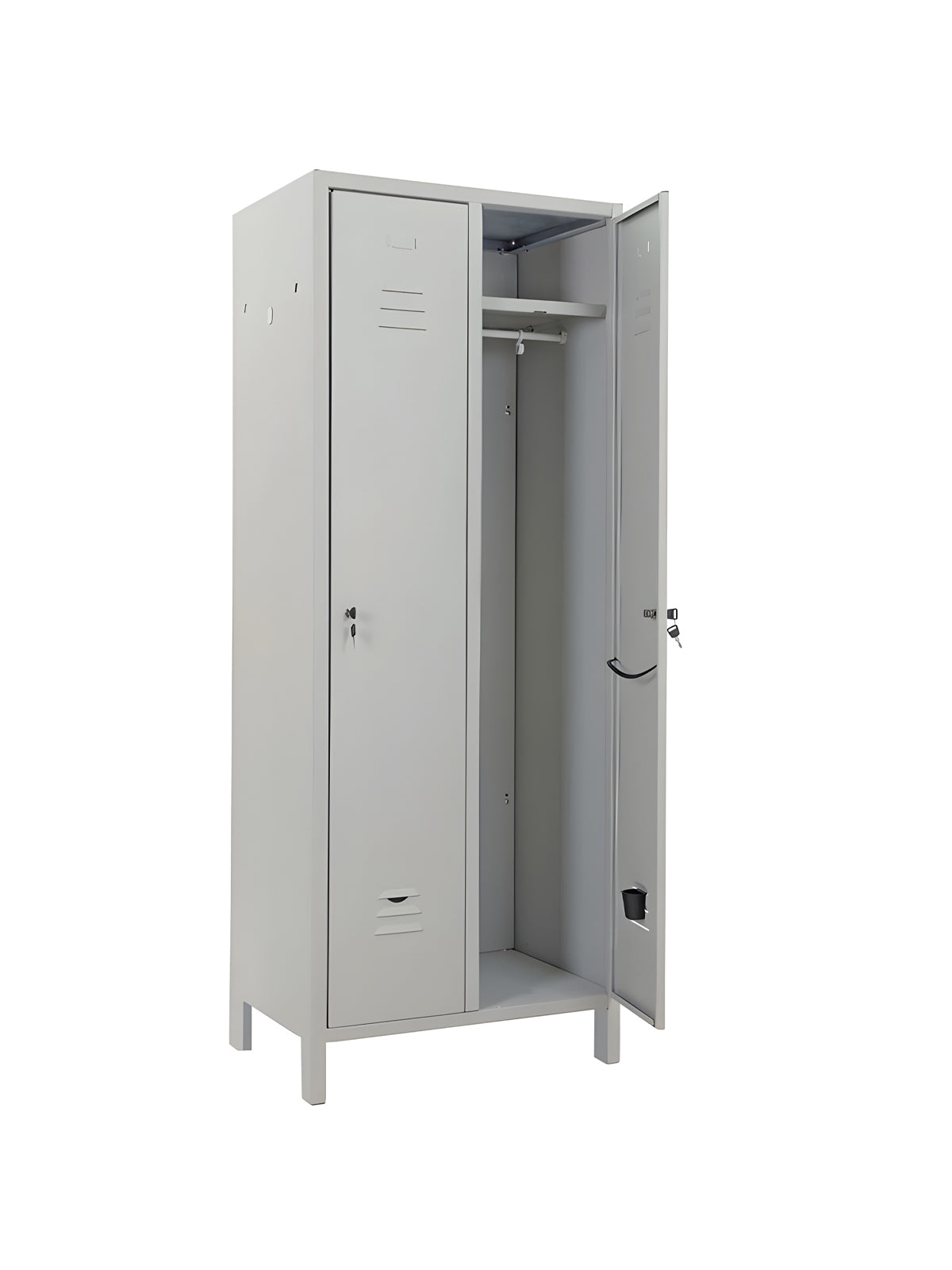 AccediQuesti armadi metallici per spogliatoi a 2 porte sono costruiti in lamiera lucida con uno spessore di 0,6 mm. Verniciati in polvere epossipoliestere resistente al calore e ai raggi UV, sono di colore grigio chiaro RAL 7035. Ogni armadio è dotato di un pianetto e un portaombrelli, oltre a una serratura a chiave per garantire maggiore sicurezza. Le dimensioni sono 35 cm di profondità, 180 cm di altezza e 68 cm di larghezza, con un peso di 18 kg. Ideali per ambienti come spogliatoi, questi armadi offrono praticità e resistenza per un uso quotidiano.
