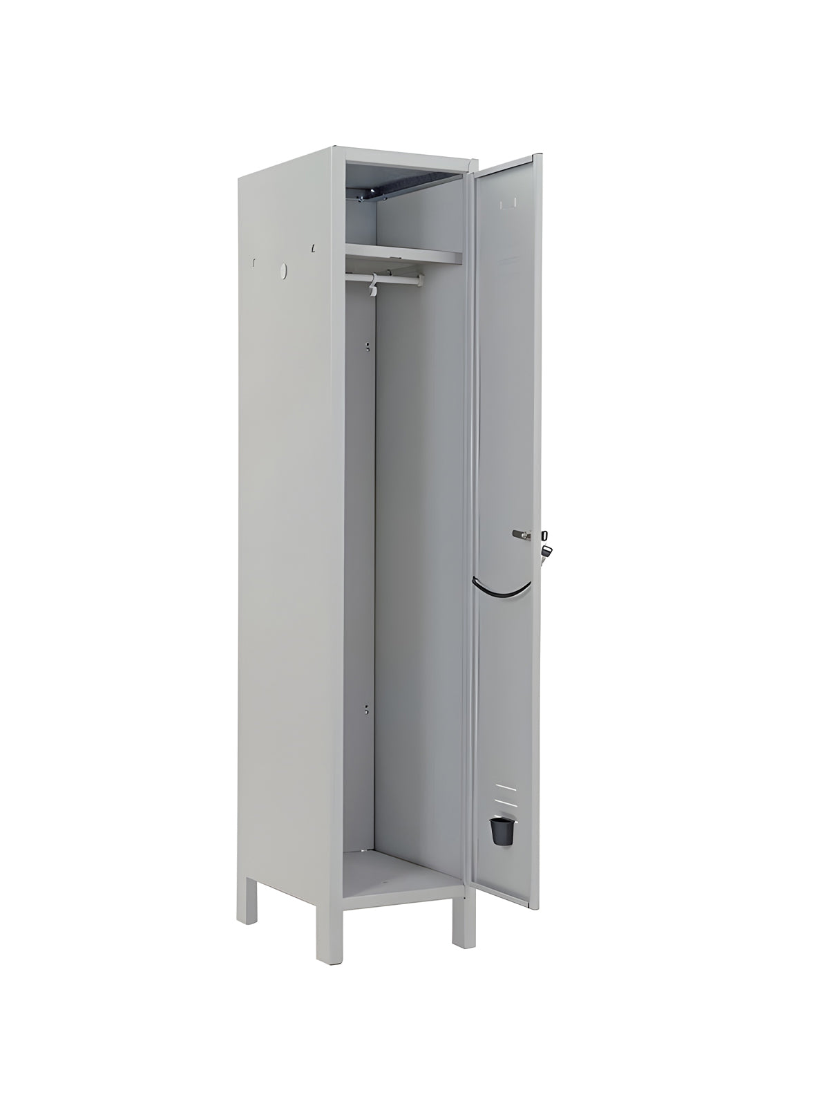 AccediGli armadi metallici per spogliatoi sono realizzati in lamiera lucida con uno spessore di 0,6 mm, verniciati in polvere epossipoliestere resistente al calore e ai raggi UV. Di colore grigio chiaro RAL 7035, questi armadi sono dotati di un pianetto e portaombrelli, e sono equipaggiati con una serratura a chiave per una maggiore sicurezza. Le dimensioni sono 35 cm di profondità, 180 cm di altezza e 36 cm di larghezza, con un peso di 15 kg. Ideali per spogliatoi, sono pratici e robusti, garantendo durabilità e funzionalità.