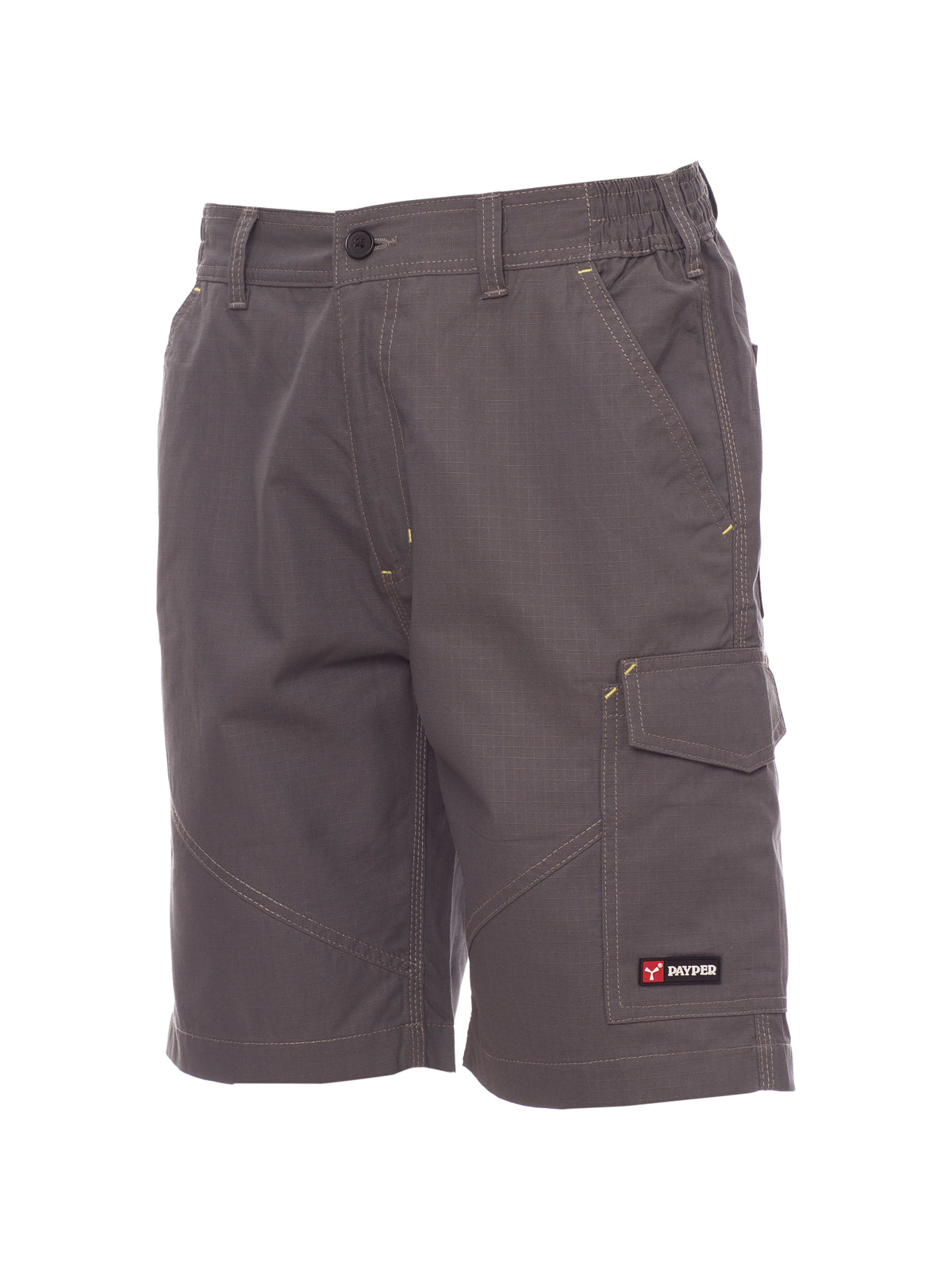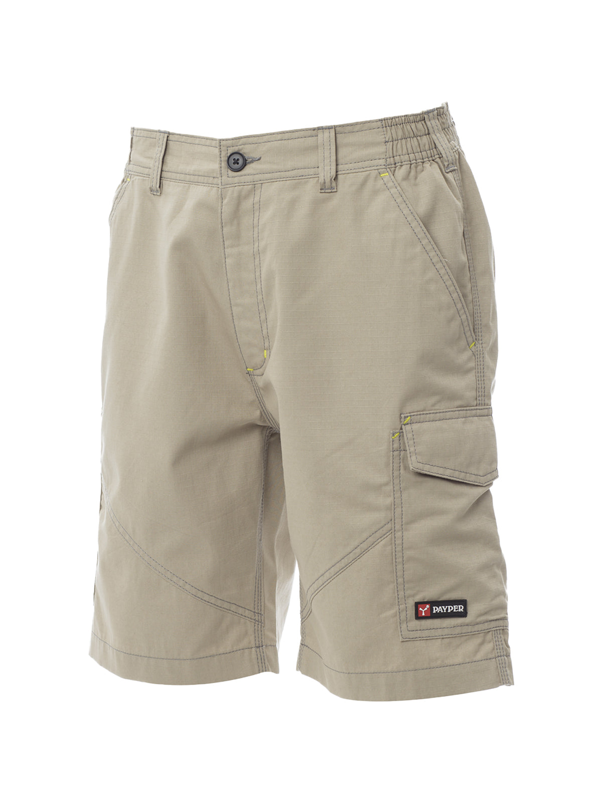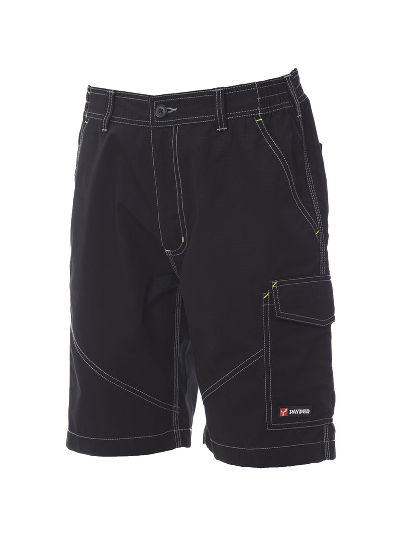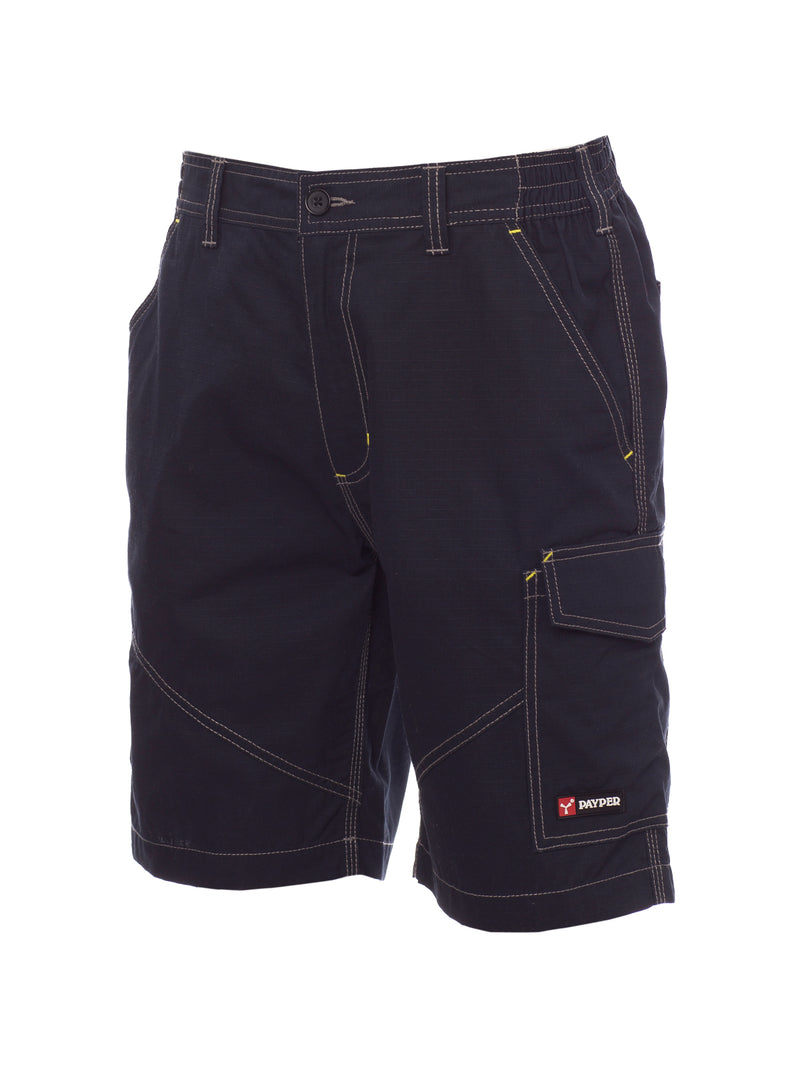 AccediBermuda elastici laterali e passanti in vita, chiusura con zip e bottone in plastica, due tasche anteriori a taglio classico, una tasca laterale LOCK SYSTEM, un porta metro, due tasche posteriori una aperta e una con patta e velcro, inserti ed impuntare a contrasto, bande reflex su tasca posteriore, cuciture triple.