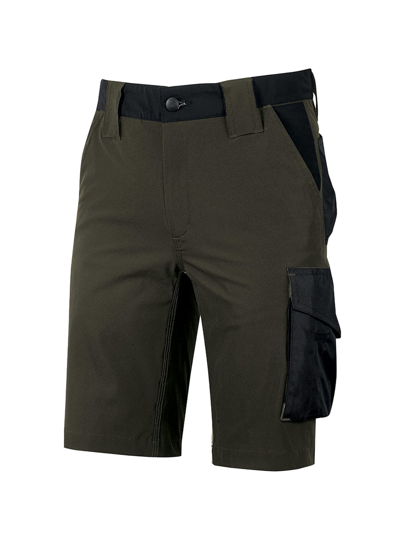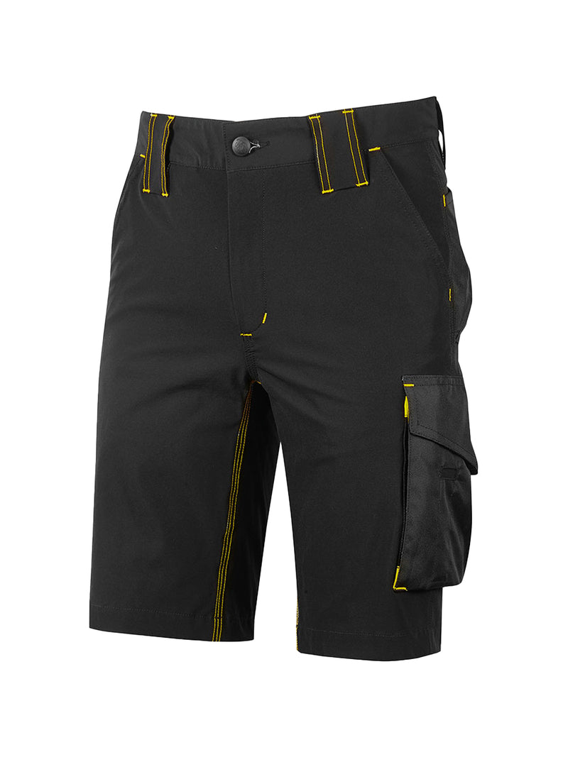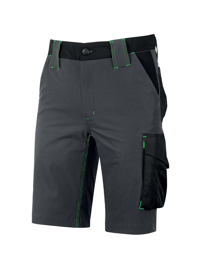 AccediBermuda in tessuto U-4 (U-Power 4 Way Stretch) molto comodo, resistente, morbido sulla pelle, idrorepellente, traspirante e asciuga rapidamente. Dotato di due ampie tasche anteriori, elastico in vita con un sistema innovativo di regolazione a scomparsa. Chiusura centrale con zip YKK e bottone gommato antigraffio. Carrè posteriore accentuato per una maggior protezione della parte lombare e nastro reflex su passante tubolare posteriore. Tasca laterale porta utensili, multifunzionale con porta badge a scomparsa, due tasche posteriori di cui una con pattina e una con chiusura di sicurezza a velcro. Due tasche, chiuse con zip in corrispondenza del tascone laterale e della tasca frontale destra. Triple cuciture, Slim Fit.