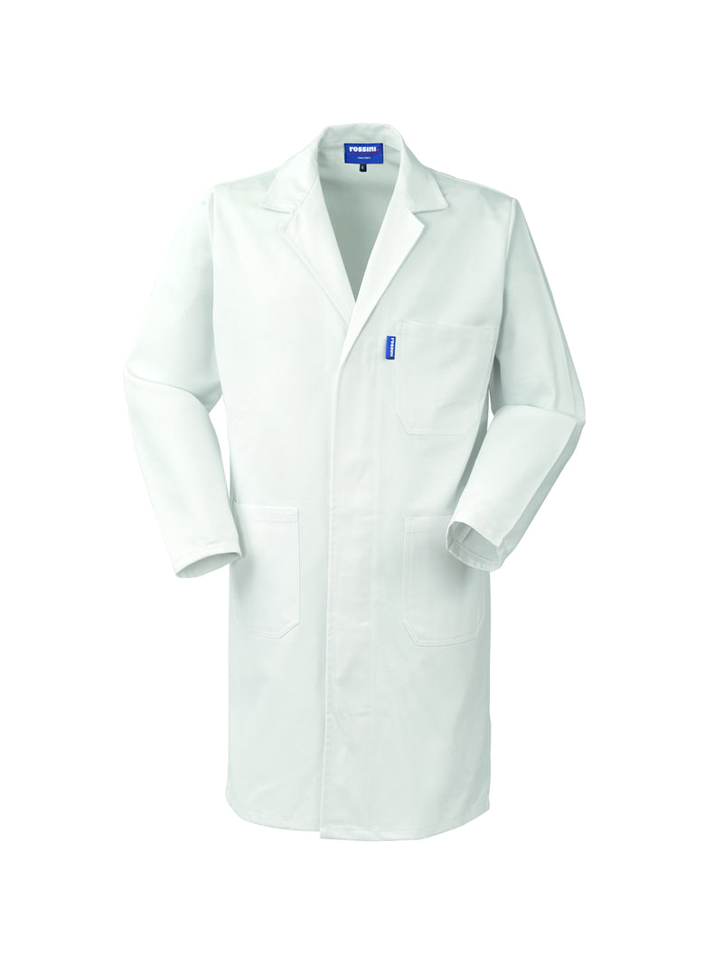AccediCamice uomo con chiusura con bottoni coperti, collo aperto, schiena intera.