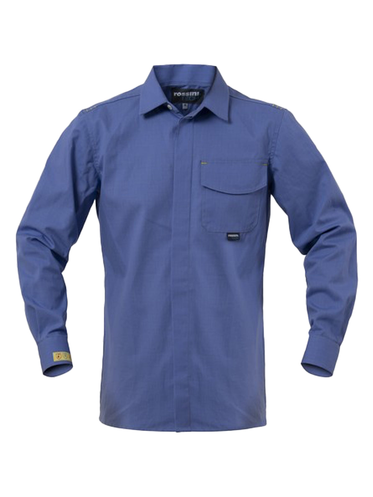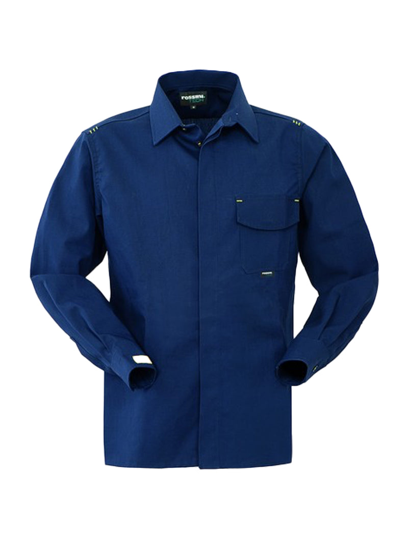 AccediCamicia da lavoro con chiusura anteriore con bottoni tradizionali coperti.