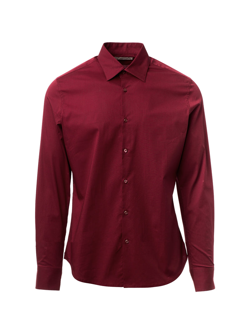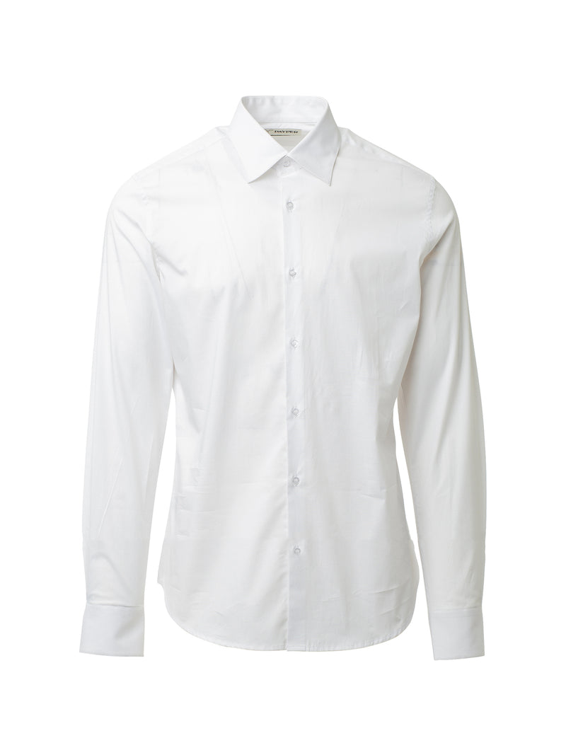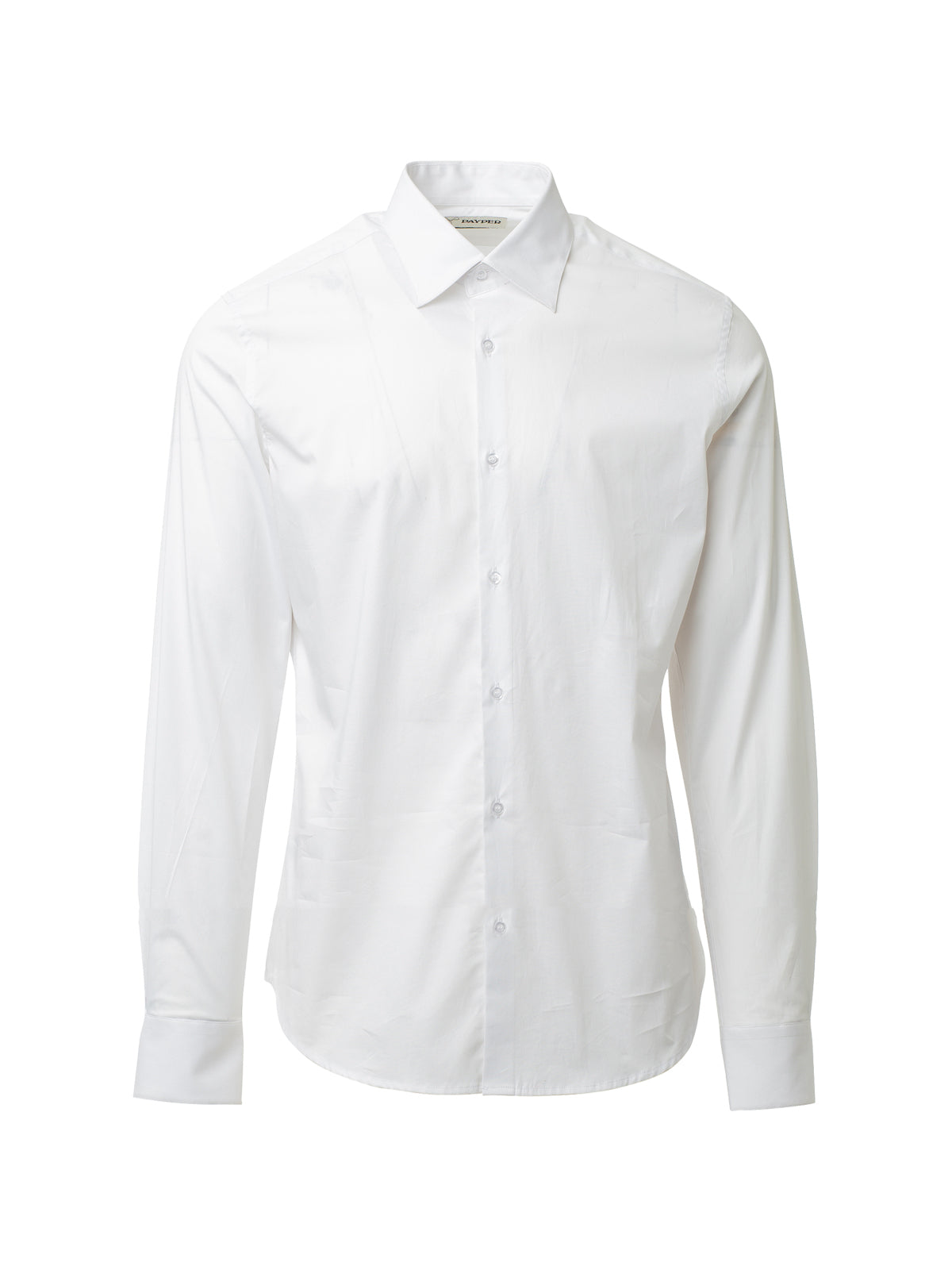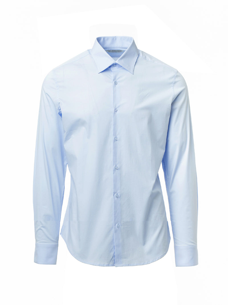AccediCamicia vestibilità slim, collo italiano sagomato con nasello chiuso e stecche estraibili, cannoncino ripiegato all’interno, abbottonatura a vista, carré liscio sul retro, pinces di ripresa a metà schiena, chiusura fianchi con mosca di tessuto, polsini stondati con 1 bottone.