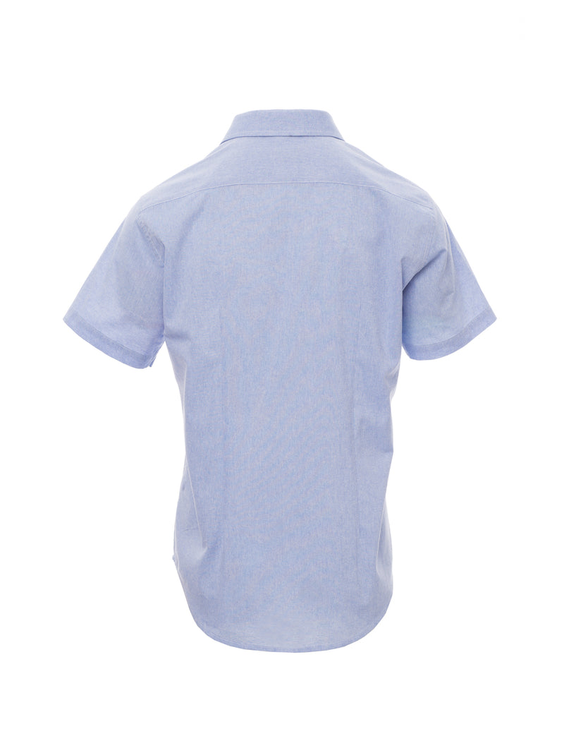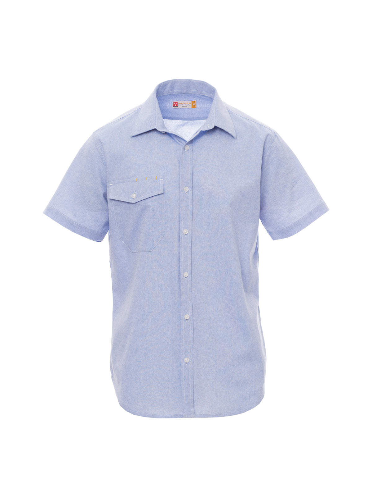 AccediCamicia a manica corta con vestibilità leggermente sfiancata, colletto modello italiano, davanti con cannoncino cucito a vista e bottoni bianchi effetto perlato, polso sagomato a due bottoni e un'asola; dietro con carrè e pinces di ripresa; una tasca tecnica al petto chiusa da patta con bottone e due asole porta penna.