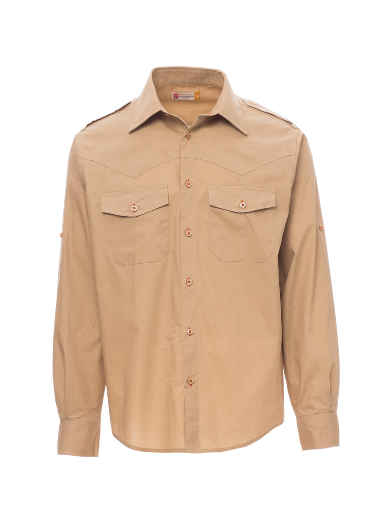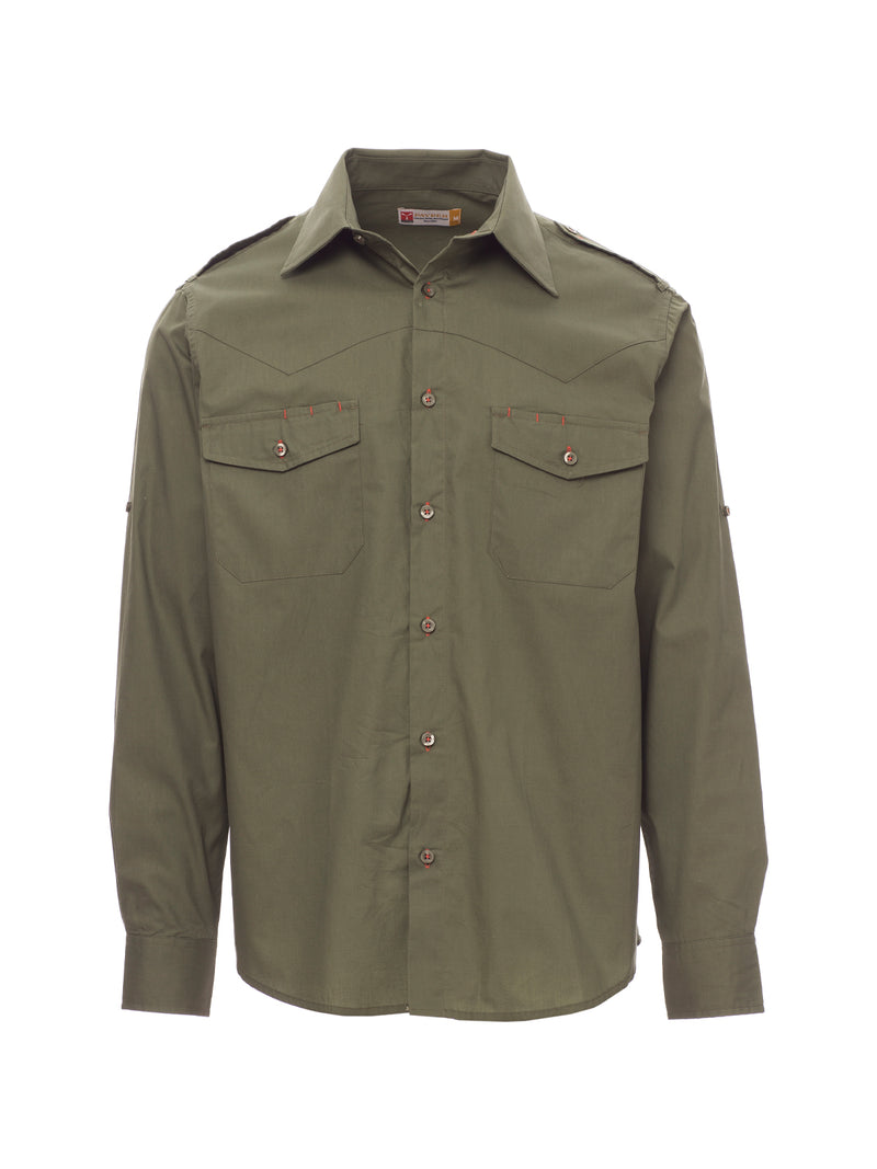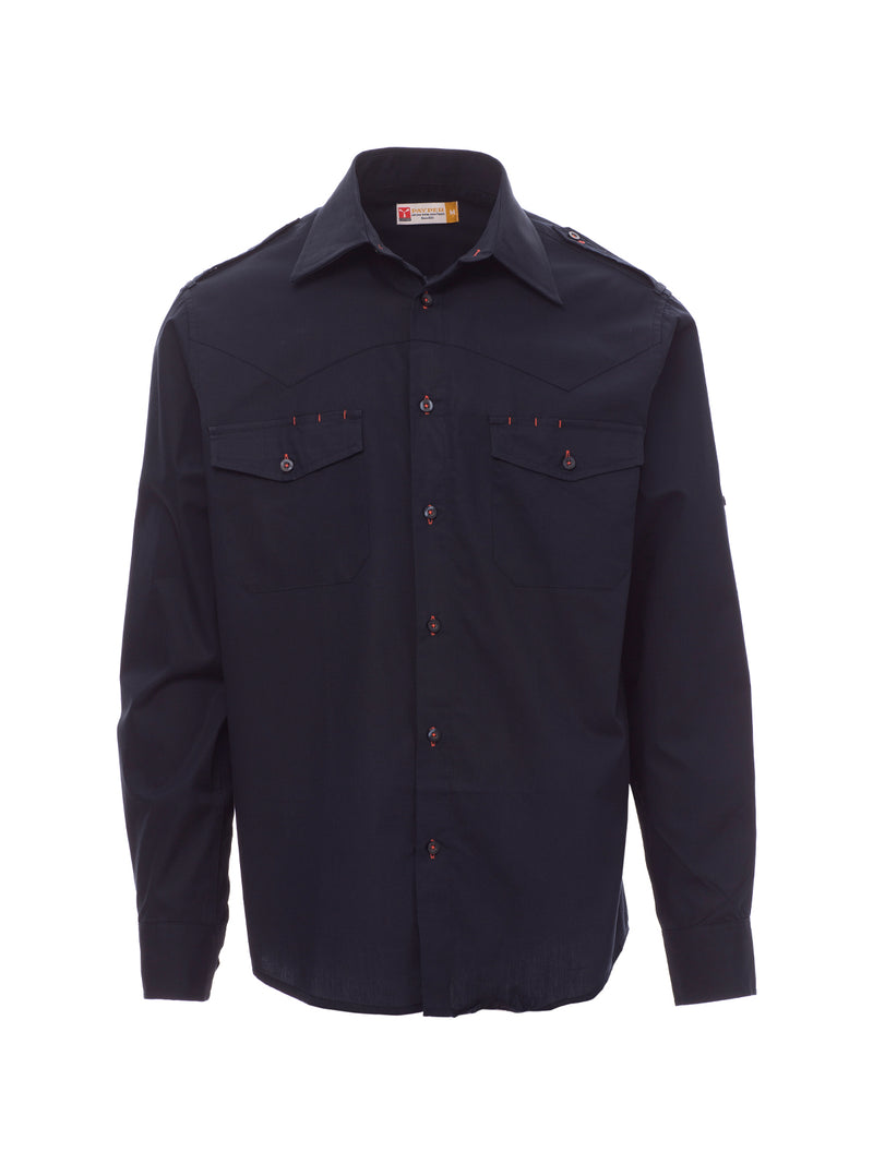 AccediCamicia dal titolo finissimo di cotone pettinato, vestibilità leggermente sfiancata, carrè sul davanti, chiusura con bottoni in tinta e asole in colore a contrasto, spalline, due tasche al petto con patta e asole porta penna, fettuccia con bottone al braccio per il pratico arrotolamento delle maniche. La camicia in colore bianco non ha le asole in colore a contrasto e il carré sul davanti. Trattamento easy care del tessuto.
