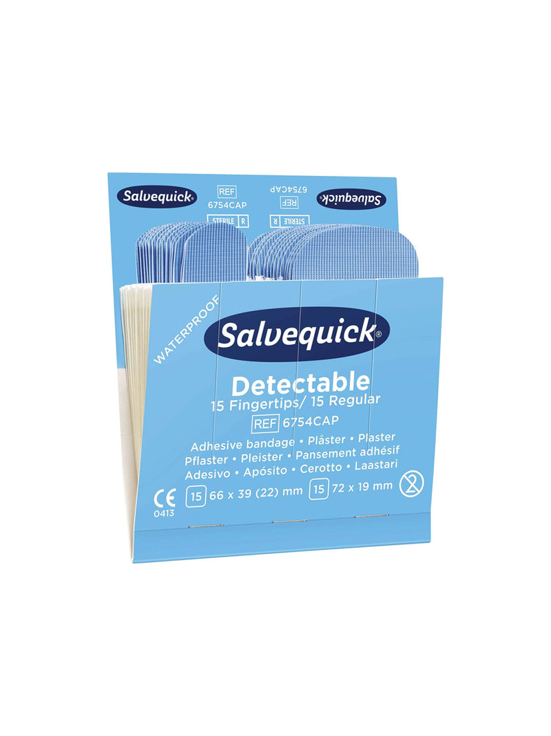 AccediI cerotti Blue Detectable SALVEQUICK sono progettati specificamente per l'uso nel settore alimentare. La loro caratteristica principale è la rilevabilità tramite metal detector, garantendo maggiore sicurezza durante la manipolazione degli alimenti. Sono testati per le allergie e adatti al contatto diretto con gli alimenti.