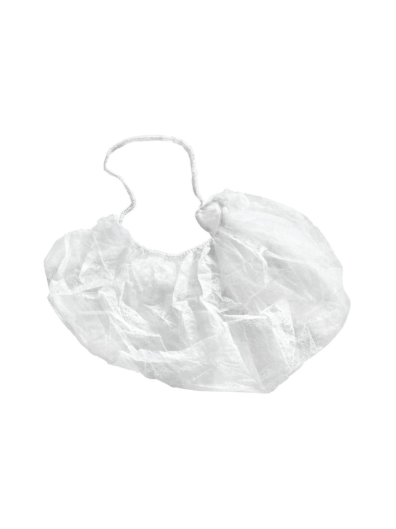 Copri-barba in tessuto-non-tessuto in polipropilene (materiale ipoallergenico) estremamente leggero e traspirante, con elastico sottile.
