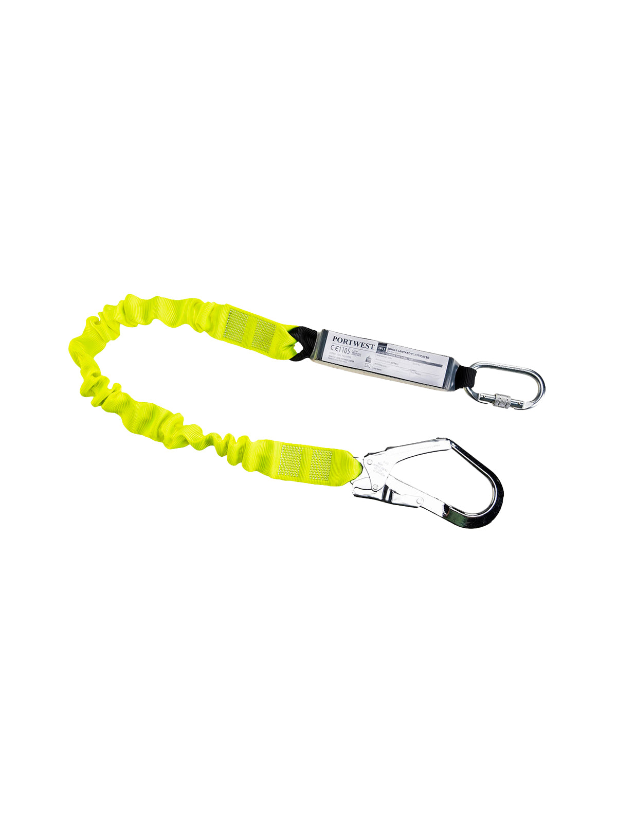 AccediIl cordino singolo elasticizzato è un dispositivo di sicurezza progettato per ridurre il rischio di inciampare o impigliarsi, grazie alla fettuccia elasticizzata. Con una lunghezza di 180 cm (inclusi i connettori estesi), è dotato di un assorbitore di energia, un gancio per ponteggio (apertura da 52 mm) e un moschettone (apertura da 19 mm). La fettuccia è resistente e ha un'elevata resistenza alla rottura. Il cordino supporta un carico massimo di 100 kg e ha un periodo di validità di 10 anni dalla data di produzione.