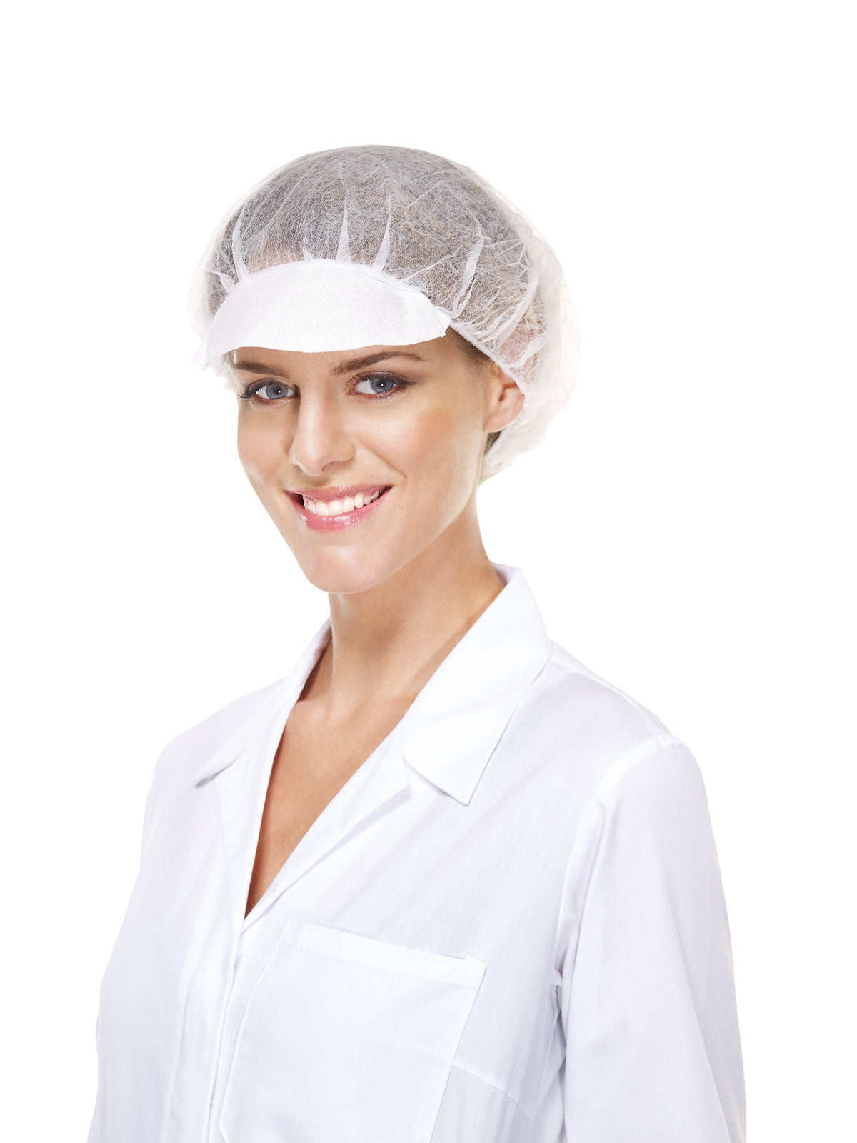 Cappello in tessuto-non-tessuto extra leggero, super traspirante, di polipropilene con elastico in lattice cucito a giro testa. La presenza della visiera incontra il gradimento di chi è tenuto ad indossare la cuffia per motivi di igiene, favorendone così l’utilizzo. Nessun elastico fastidioso sulla fronte e comfort assicurato per tutto il giorno. Adatta per proteggere chi la indossa da sporco leggero e/o l’ambiente circostante da contaminazione di capelli, particelle o polveri fini.