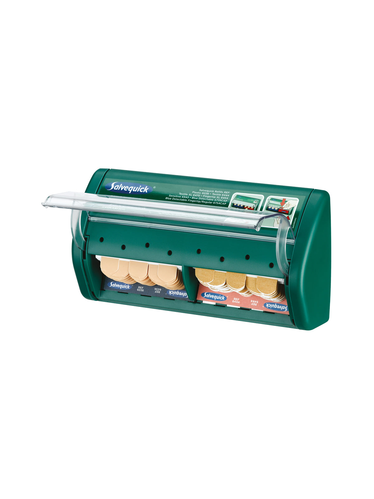 AccediQuesto pratico dispenser è ideale per l'uso immediato e contiene una selezione di cerotti in plastica e tessuto, perfetti per il trattamento rapido di piccoli infortuni. Facile da usare, garantisce un rapido accesso ai cerotti per una gestione efficiente delle ferite.