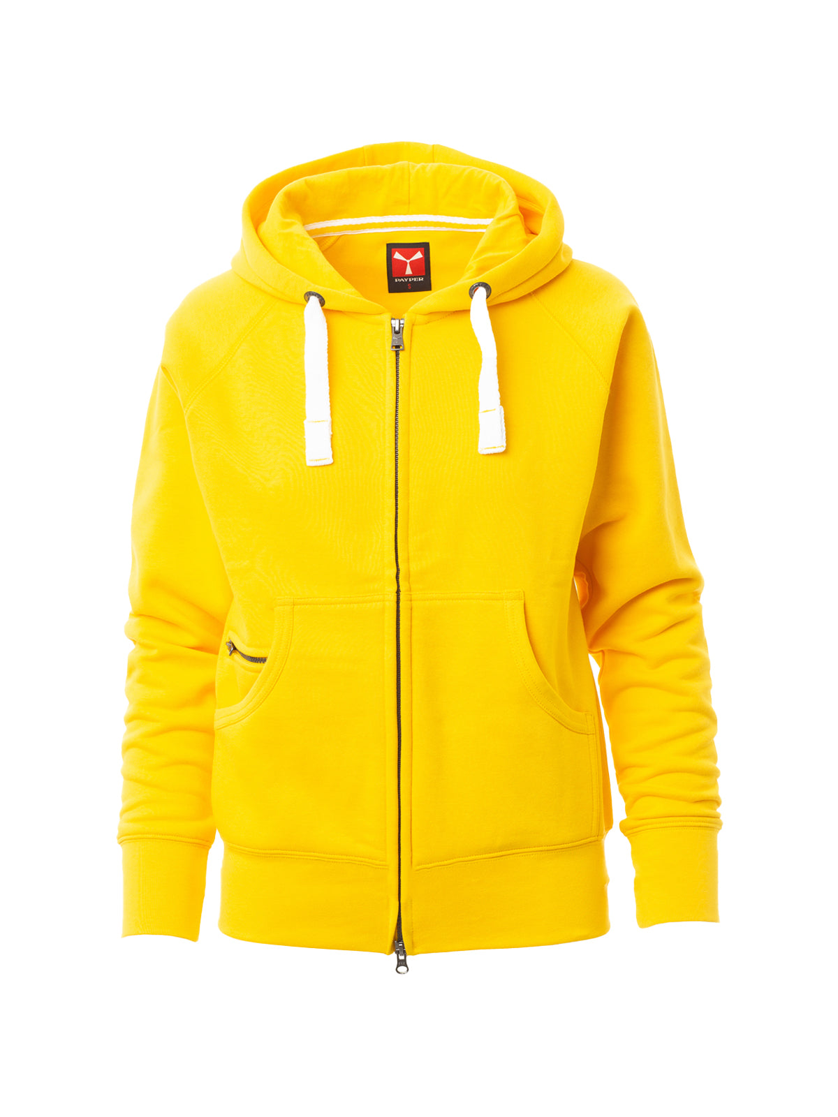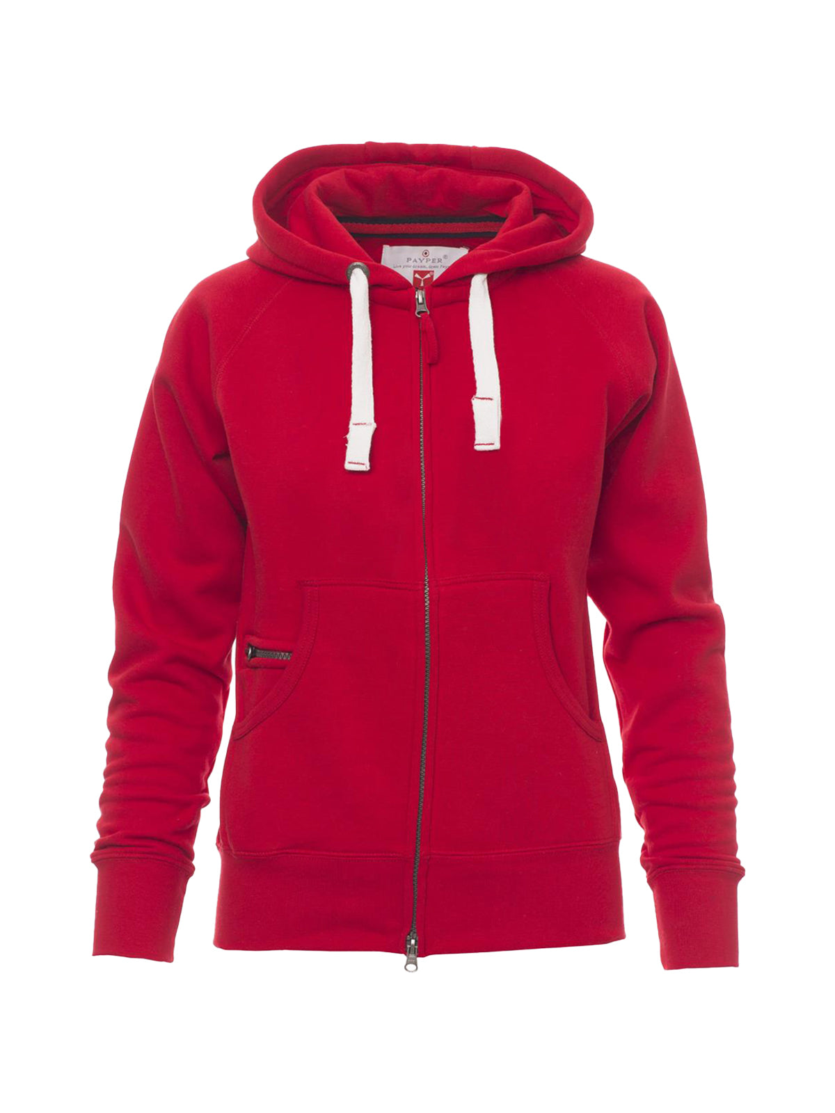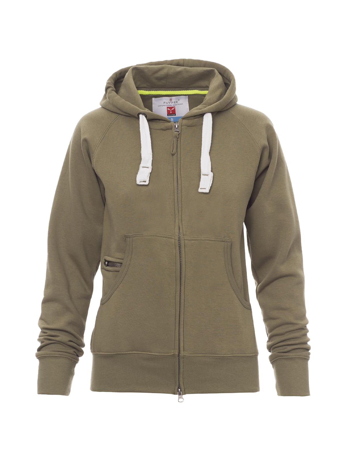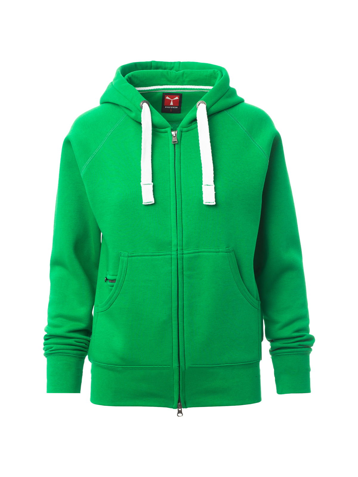 AccediFelpa garzata e sfiancata da donna con zip intera SBS coperta, dotata di doppio cursore in metallo. Il cappuccio presenta due cuciture e una coulisse bianca in corda con cuciture in tinta e anelle in metallo. Manica raglan per una vestibilità comoda e tasche a marsupio con taschino zip per una maggiore praticità. Polsini e vita in costina elasticizzata, mentre le cuciture rinforzate assicurano una maggiore durata nel tempo.