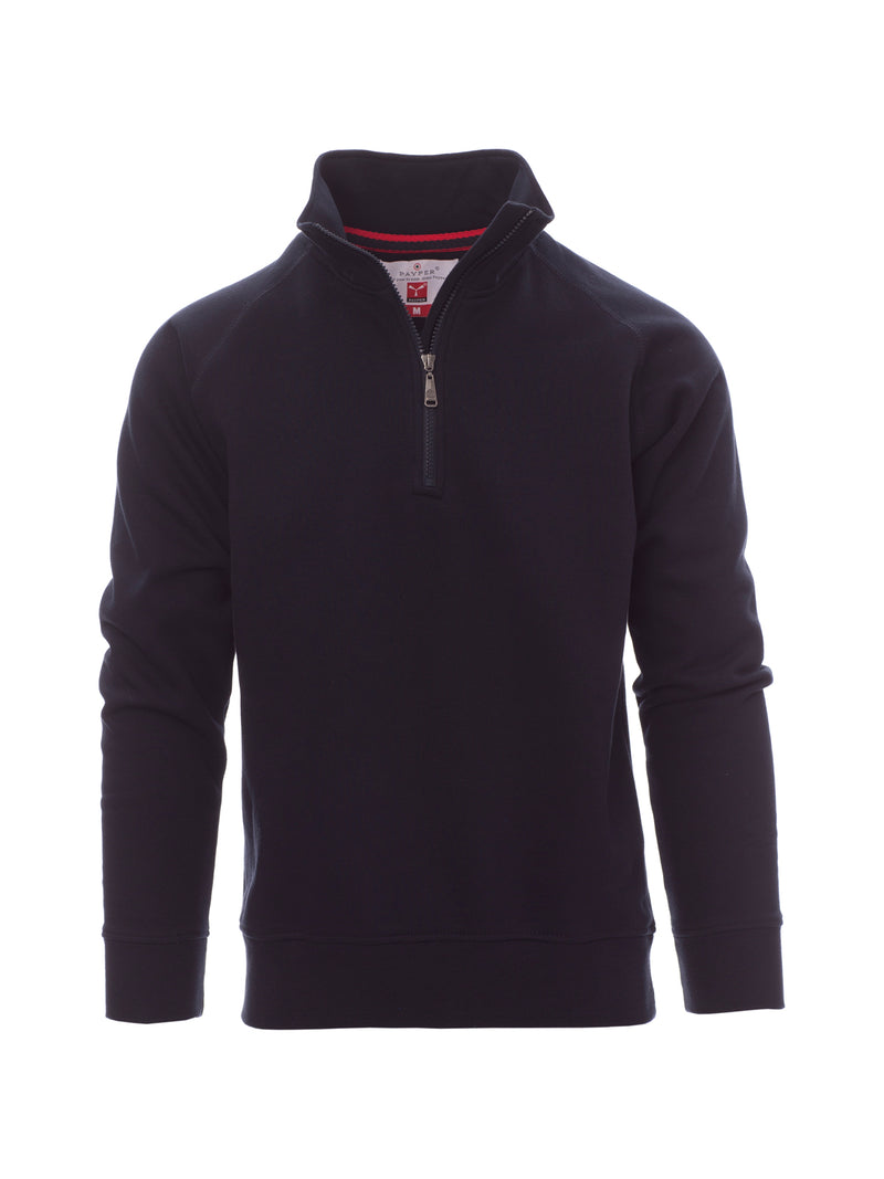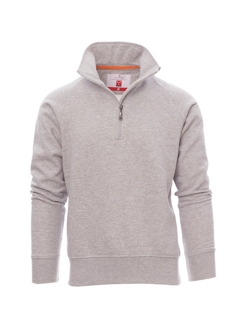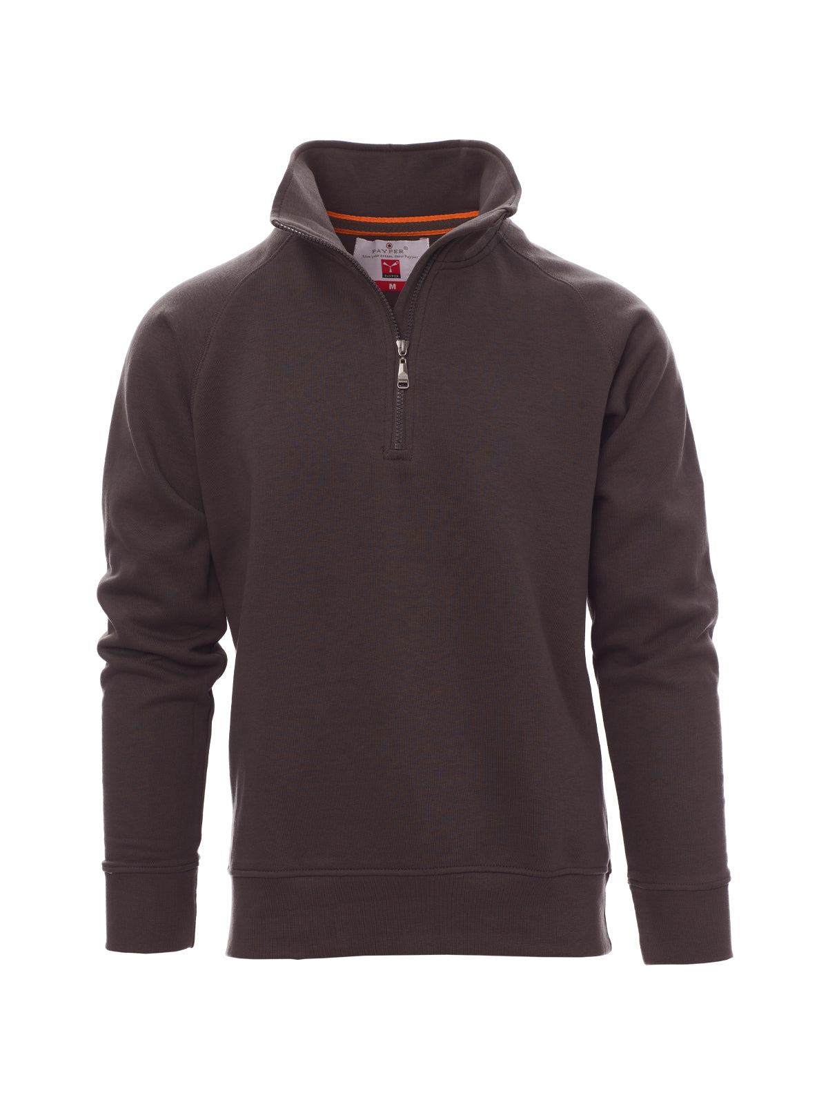 AccediFelpa da uomo garzata, mezza zip in tinta, in plastica con cursore in metallo, manica raglan, polsini e vita in costina elasticizzata, cuciture rinforzate.