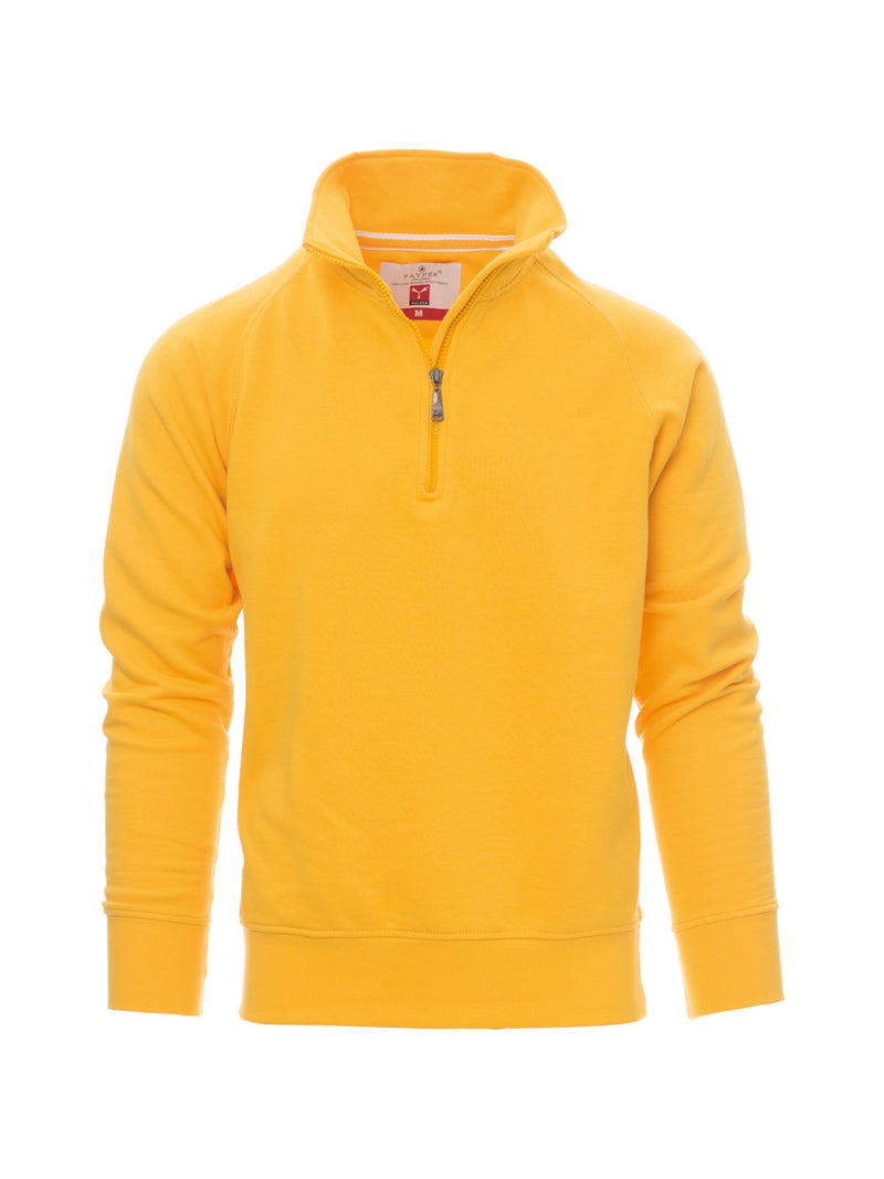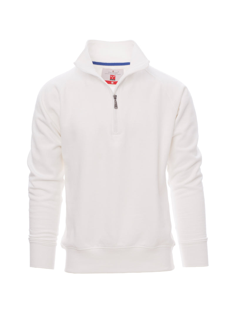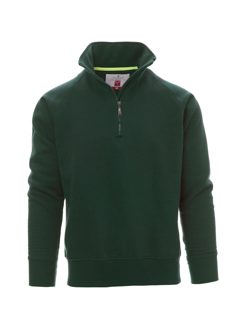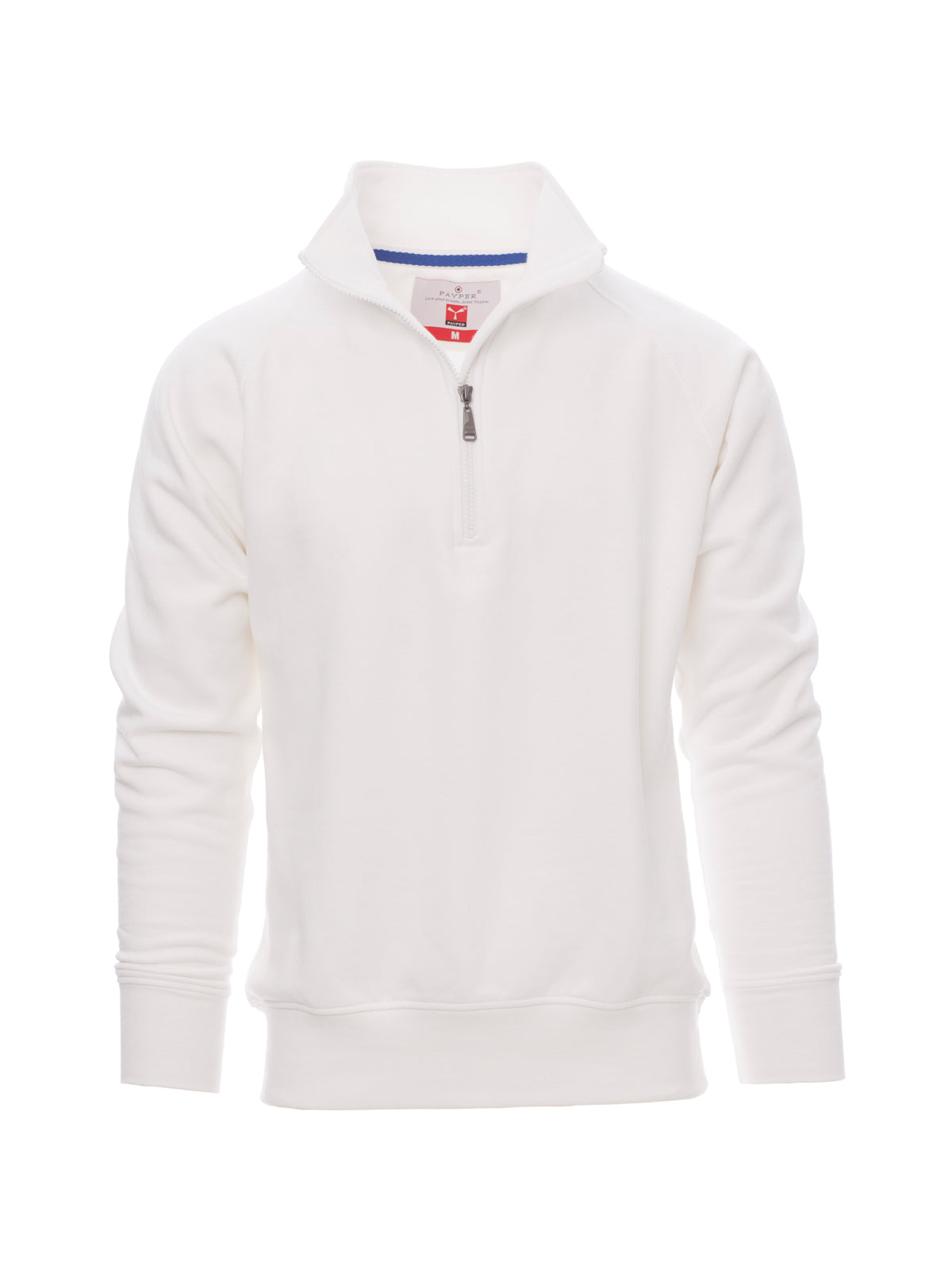 AccediFelpa da uomo garzata, mezza zip in tinta, in plastica con cursore in metallo, manica raglan, polsini e vita in costina elasticizzata, cuciture rinforzate.