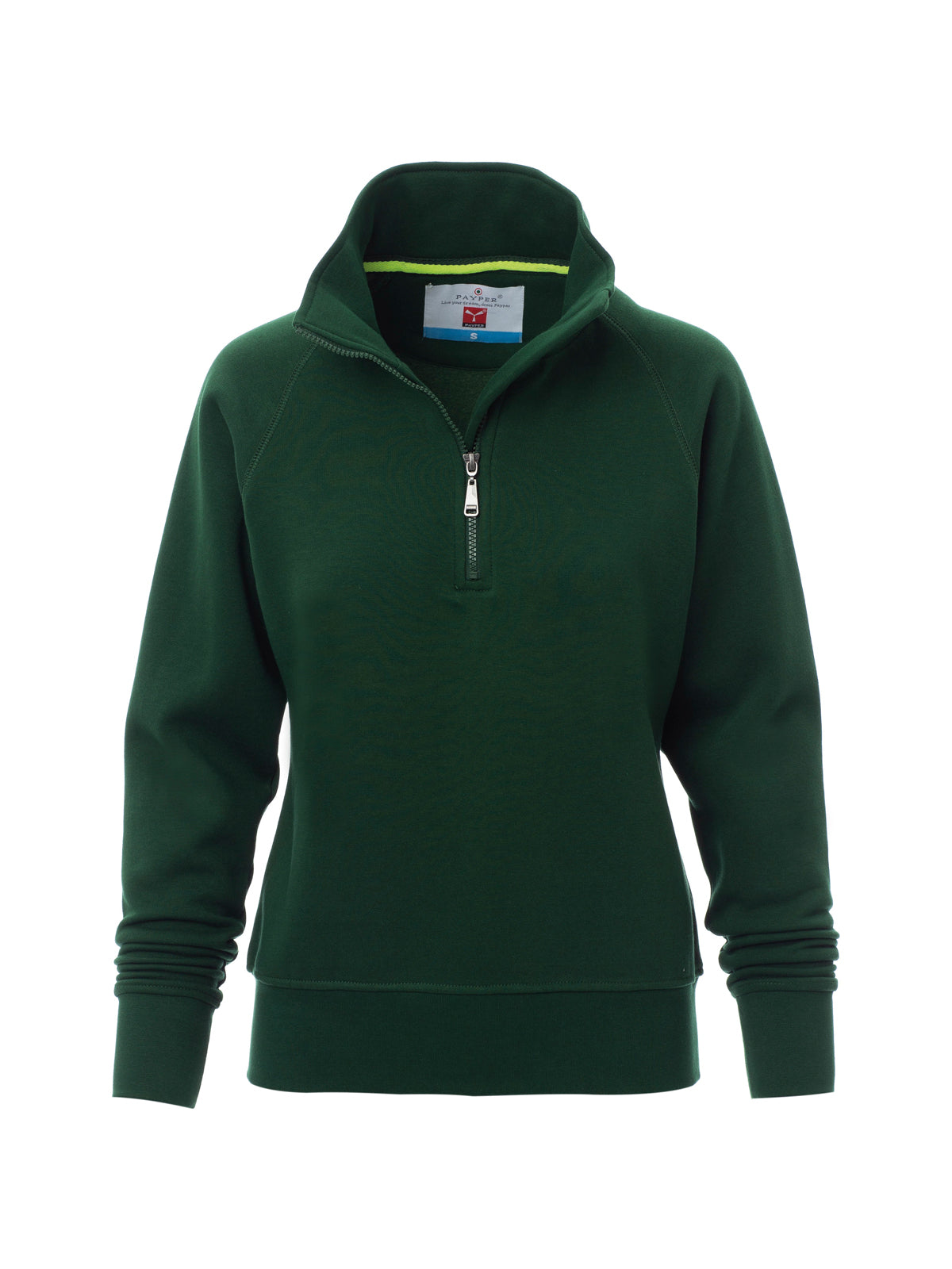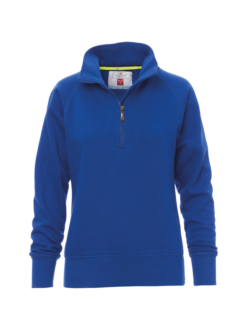 AccediFelpa da donna con mezza zip in tinta unita, dotata di un pratico cursore in metallo e zip in plastica resistente. Il modello presenta maniche raglan per una maggiore libertà di movimento e comfort. I polsini e la vita sono rifiniti con costina elasticizzata, garantendo una vestibilità perfetta. Le cuciture rinforzate assicurano durata e resistenza anche nei lavori più impegnativi. Perfetta per chi cerca praticità, comfort e stile in un'unica soluzione, sia per l'uso quotidiano che per l'attività professionale.