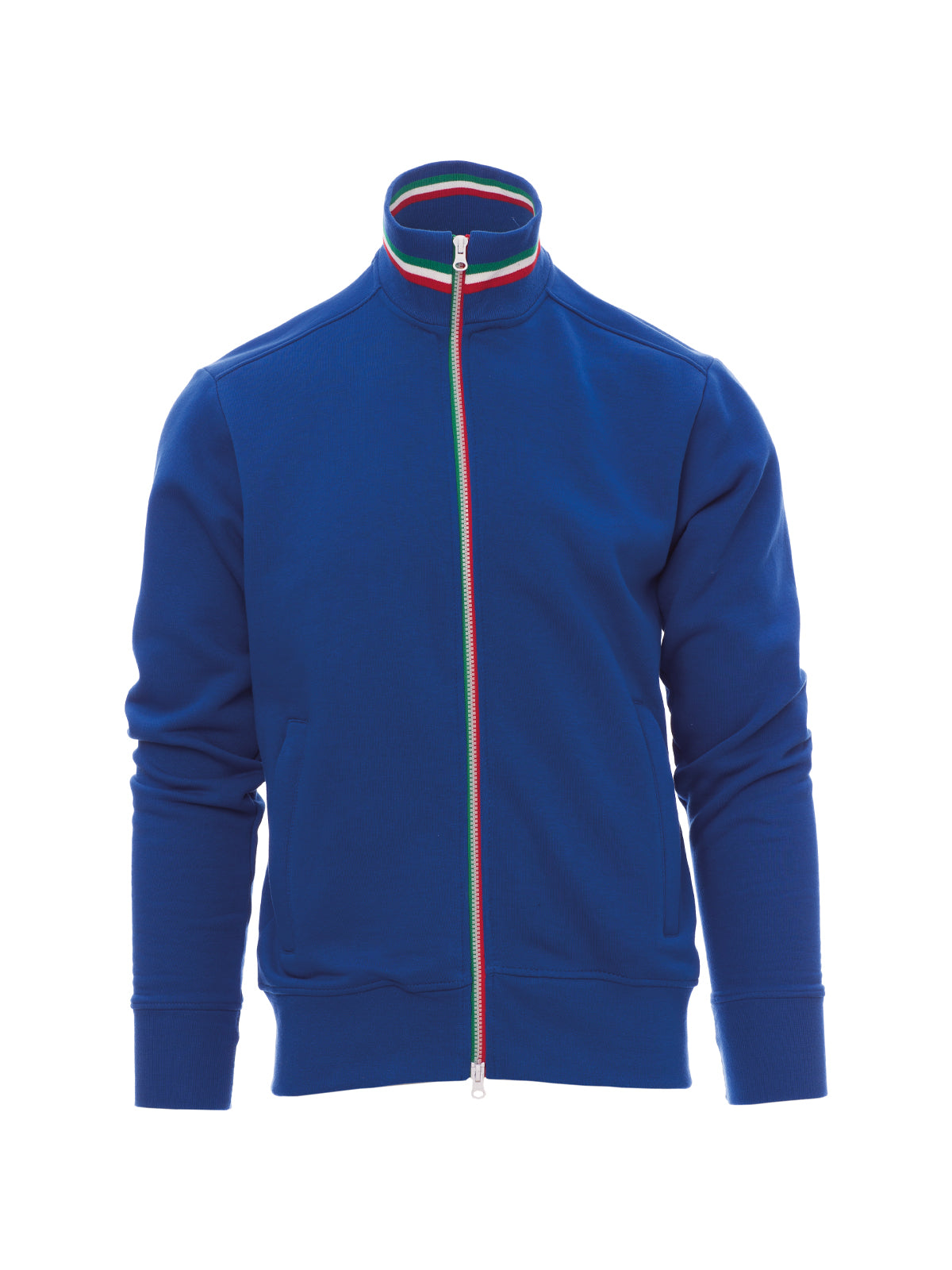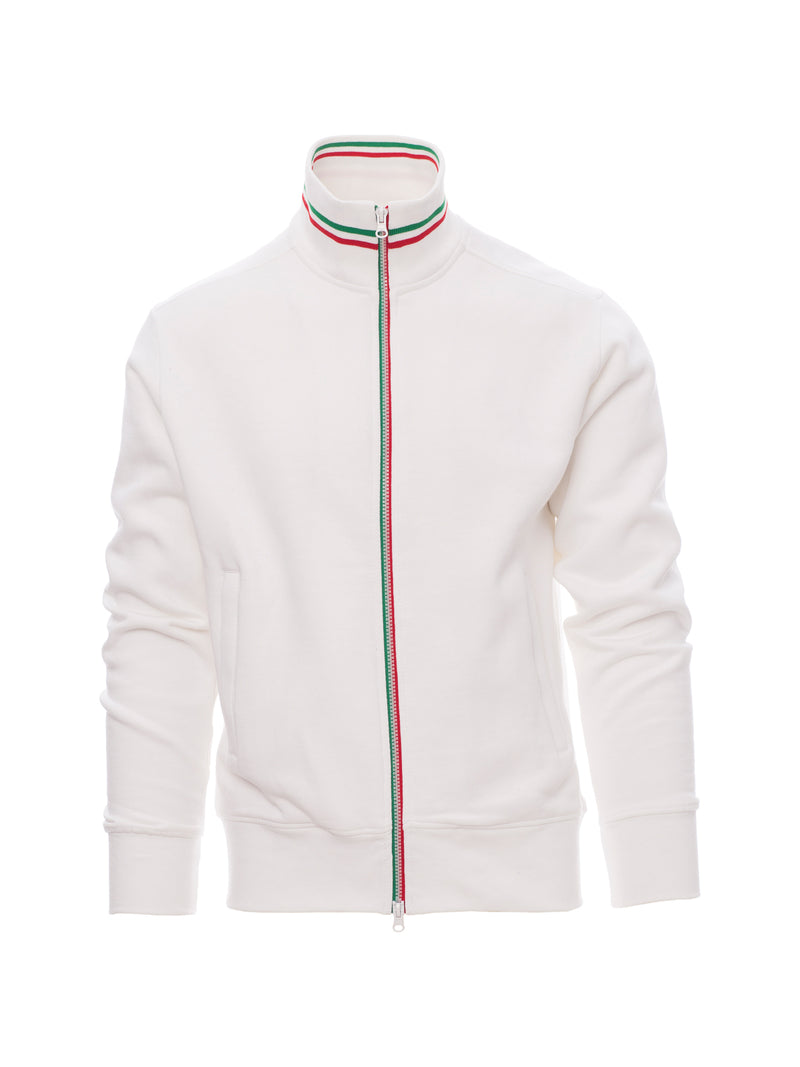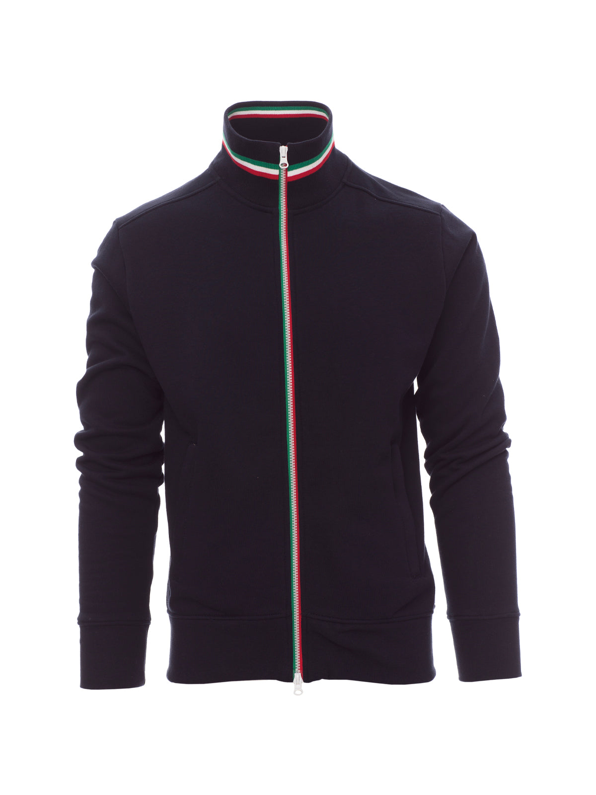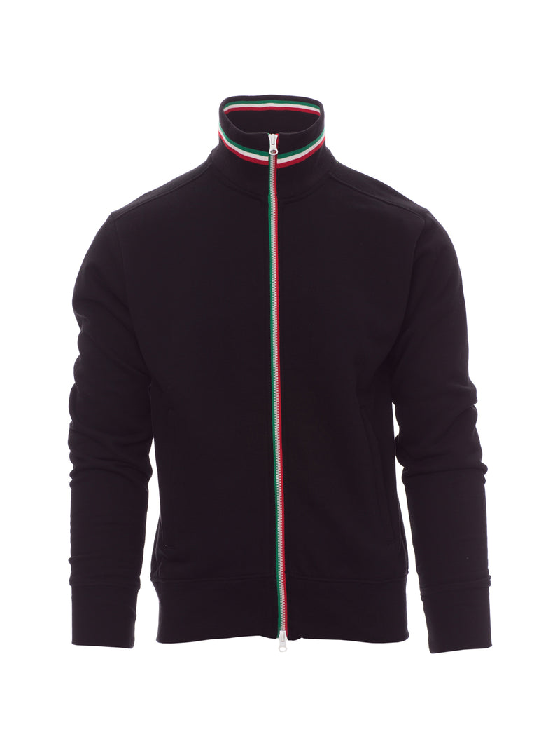 AccediFelpa garzata con zip intera SBS in plastica con tricolore a contrasto con doppio cursore in metallo, colletto in rib con tricolore a contrasto, manica a giro, due tasche esterne chiuse con zip, polsini e vita in costina elasticizzata, cuciture rinforzate.