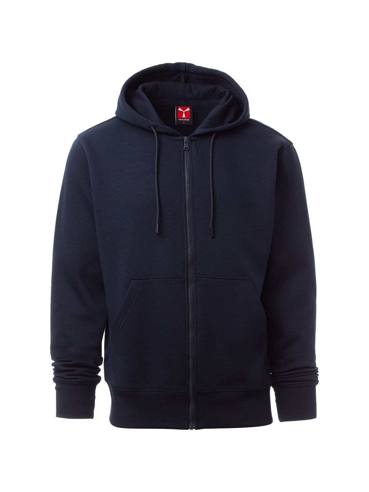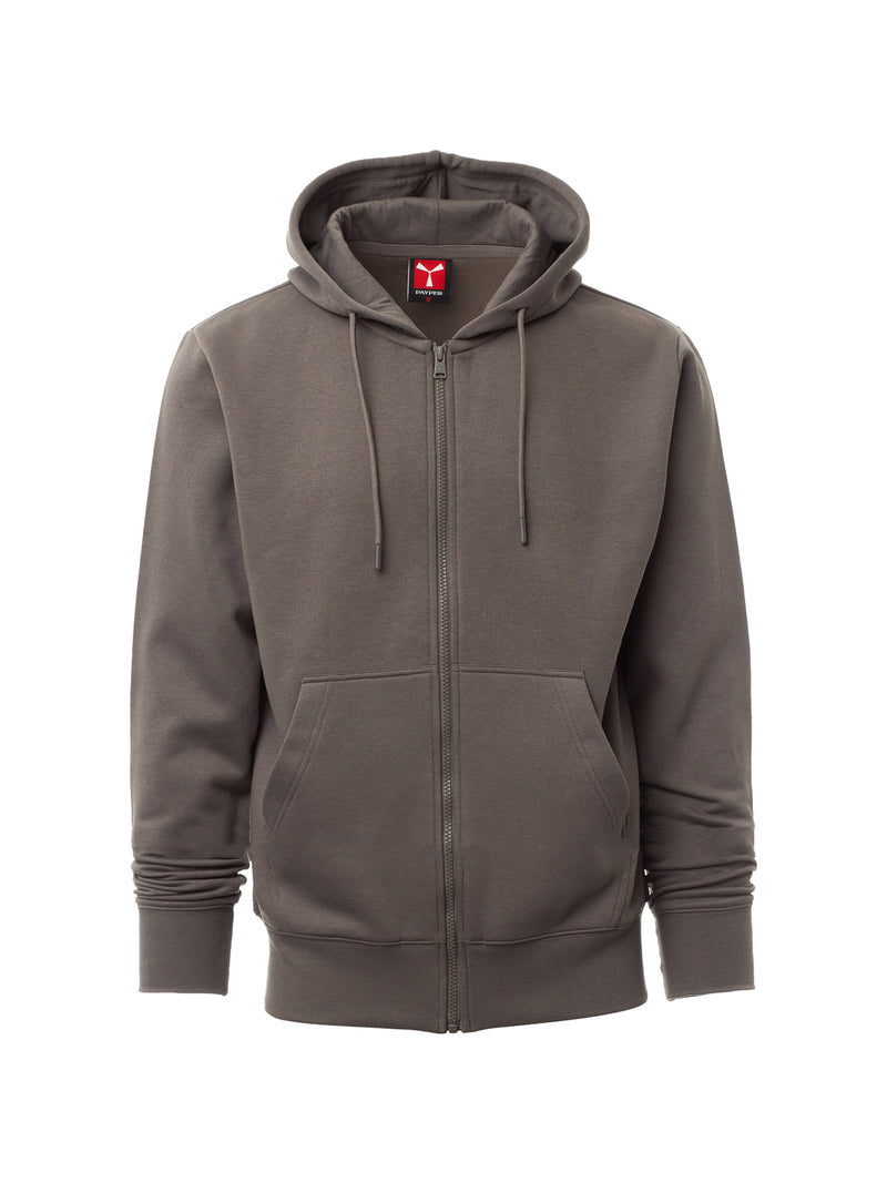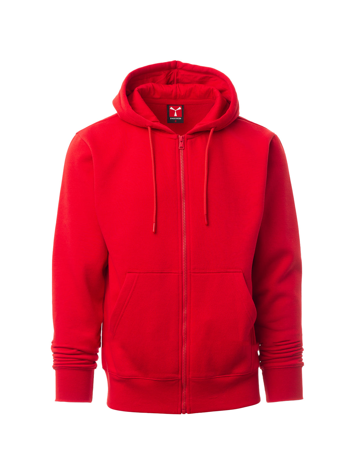 AccediFelpa garzata con zip intera in plastica a cursore singolo personalizzato, cappuccio, coulisse e cuciture in tinta, manica a giro, tasche a marsupio, polsini e fondo in costina elasticizzata. Cuciture rinforzate, nastro di rinforzo interno collo in tinta.