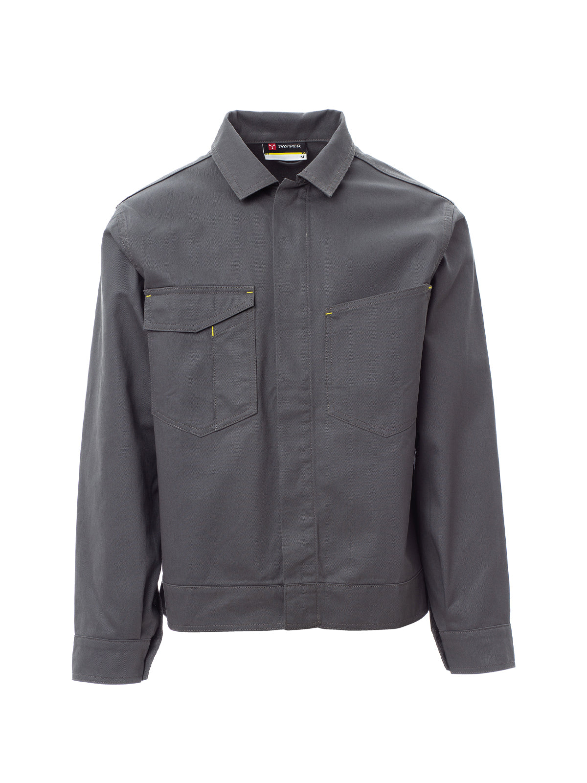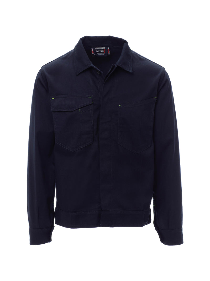 AccediGiacca non imbottita taglio slanciato modello jeans, chiusura frontale, con bottoni in plastica coperti; due tasche al petto di cui una con porta smartphone, porta badge, porta penna e patta di chiusura con velcro; chiusura al polso con bottone e vita regolabile con velcro. Interno non foderato.