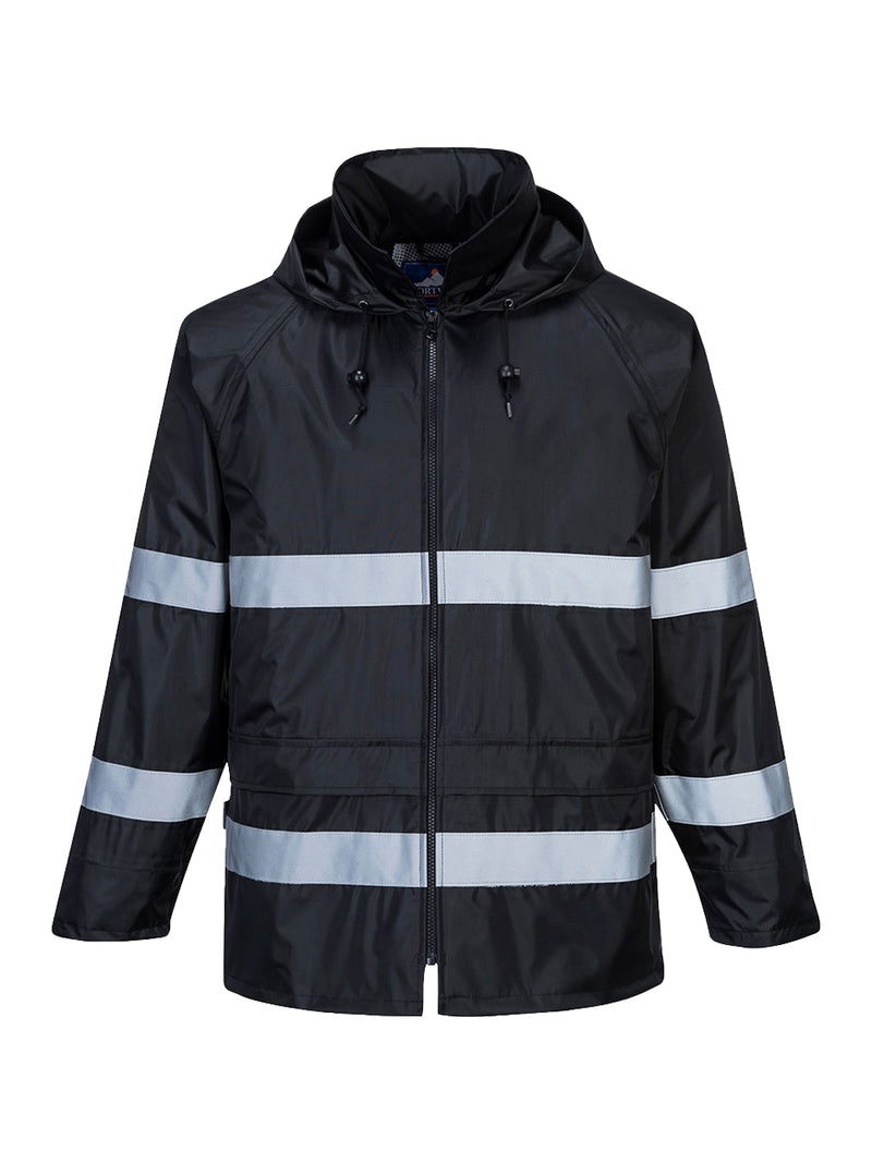 Banda riflettente nastrata per una maggiore visibilità, apertura frontale con zip e polsino interno elasticizzato. Occhielli e retro aerati per maggiore traspirabilità.