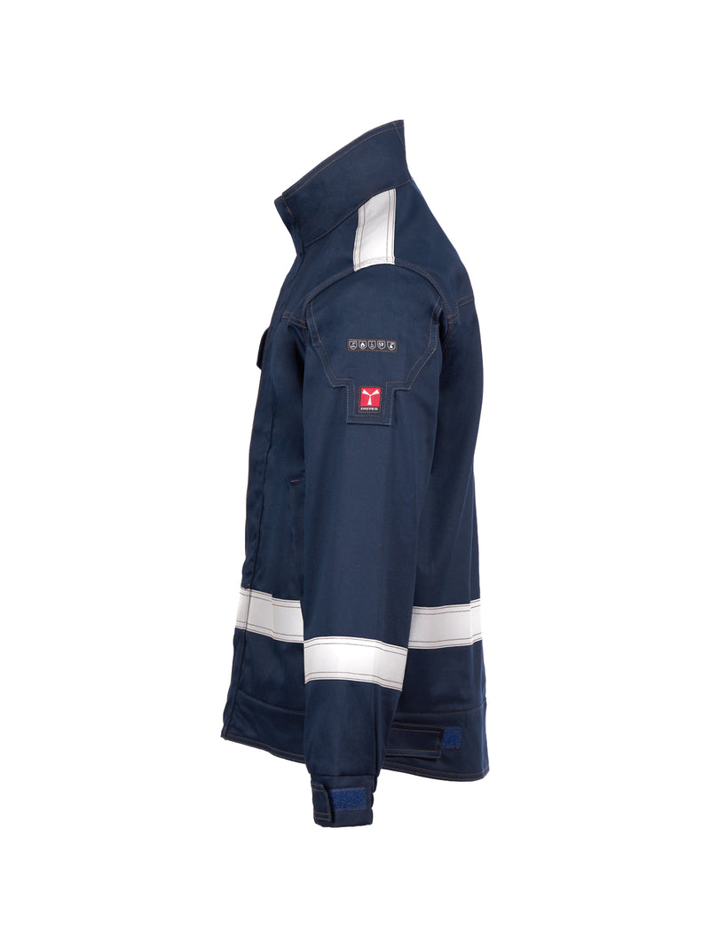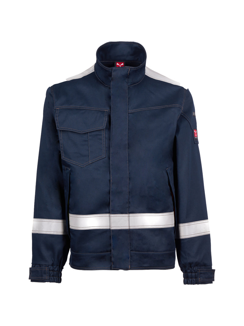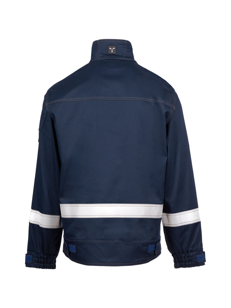AccediGiacca non imbottita, in tessuto antistatico, intrinsecamente antifiamma, con proprietà resistenti all’arco elettrico e agli agenti chimici, ideale per saldatori. Cuciture in contrasto doppie e triple in filato ignifugo. Chiusura con zip metallica bicolore coperta da patta, con paramontura interna, e bottoni a pressione. Bande retroriflettenti su spalle, vita e maniche. Toppa sagomata su braccio sinistro, con etichetta riepilogativa delle certificazioni. Taschino su petto destro con portabadge removibile e porta penna, coperto da patta con chiusura a strappo. Due tasche frontali con zip metallica bicolore nascosta. Patch su retro collo. Fondo sagomato più lungo dietro, per una migliore protezione, regolabile con alamaro esterno con chiusura a strappo. Polsino con elastico, regolabile con alamaro in velcro. Tutti gli accessori visibili resistono alle fiamme. Nessun accessorio metallico è a diretto contatto con la pelle dell'utilizzatore.
