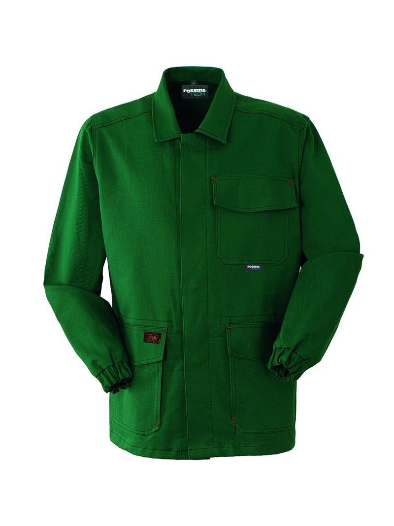 Due taschini applicati al petto chiusi con aletta e velcro, due tasche applicate chiuse con aletta e velcro con soffietto laterale interno, elastico in vita posteriore, elastico ai polsi, carré posteriore.