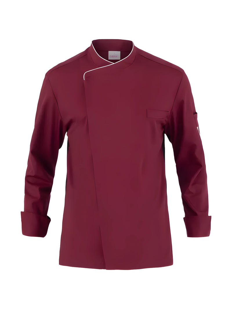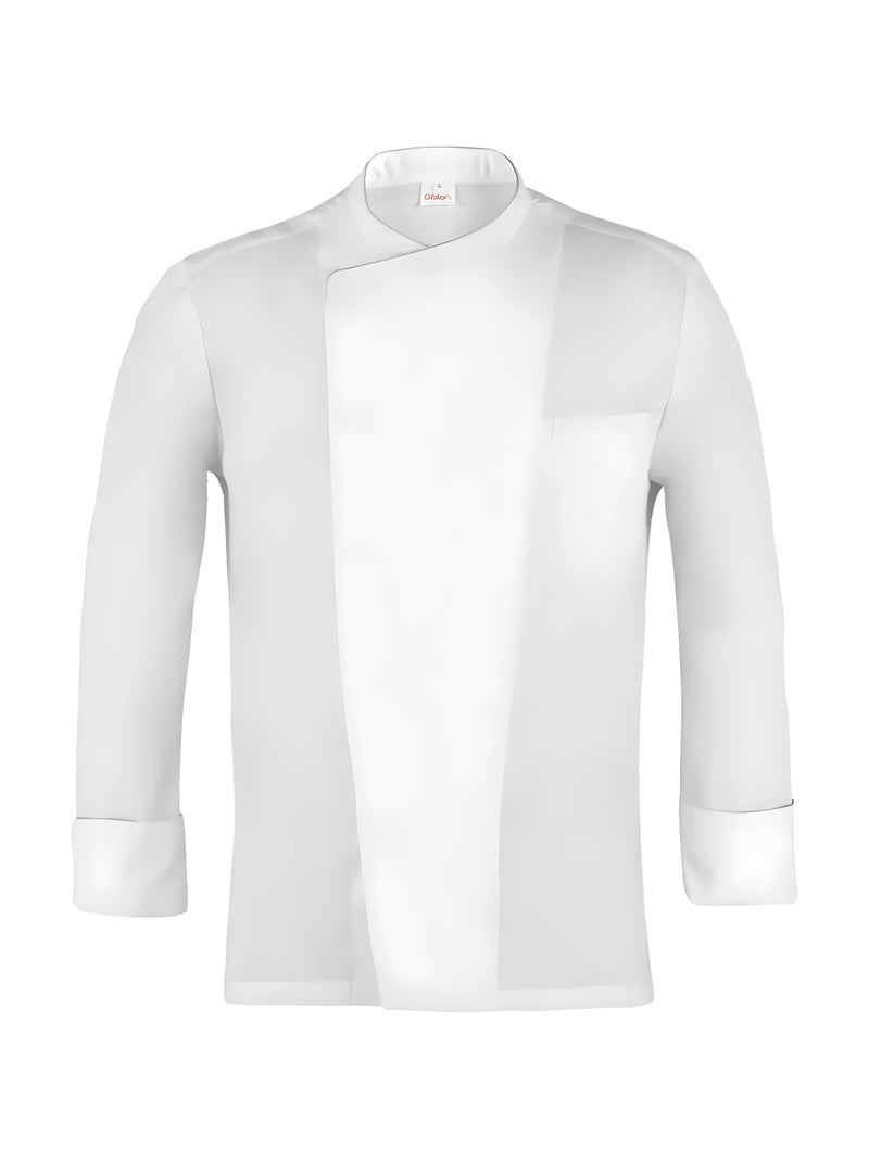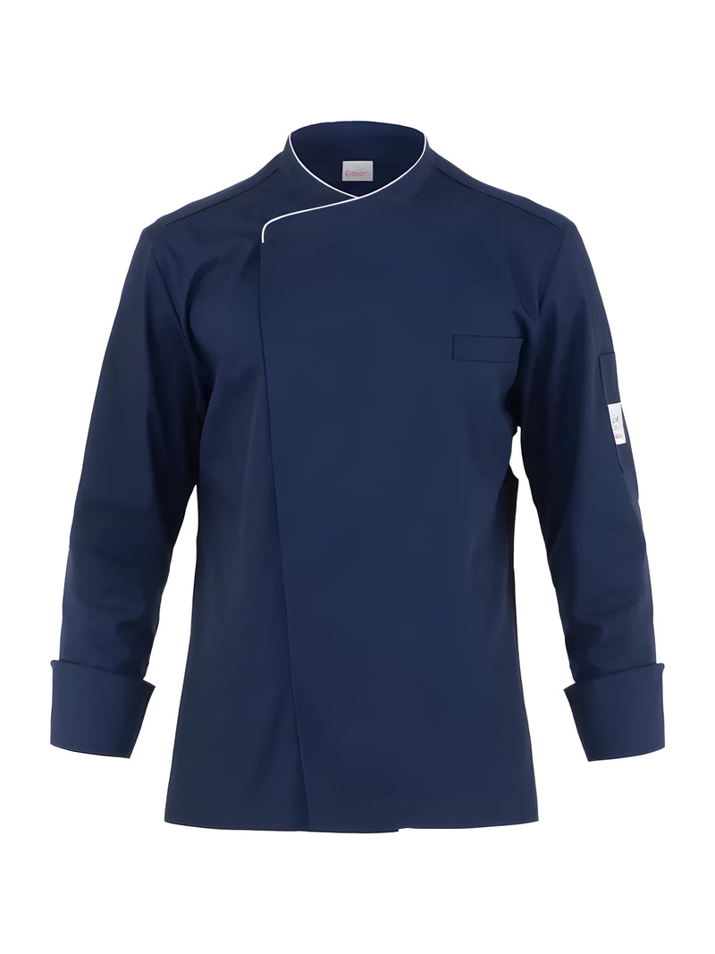 AccediQuesta giacca unisce uno stile classico a un design moderno, grazie ai tagli laterali in maglia di piquet che modellano il retro e garantiscono una vestibilità Slim Fit, assicurando al contempo massima libertà di movimento. Il capo è dotato di collo alla francese, abbottonatura frontale nascosta, taschino sul petto e pratico portapenne. Dettagli di piping, inseriti nel collo e nei polsi, aggiungono un tocco curato e professionale.