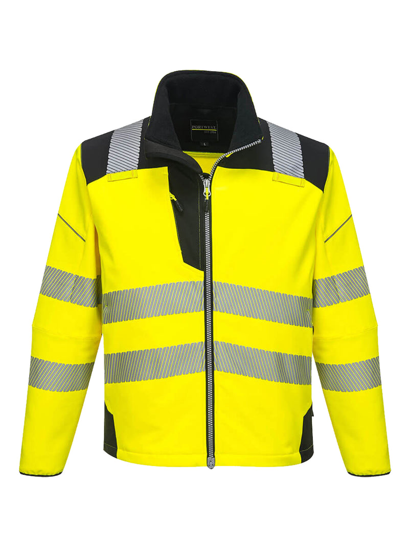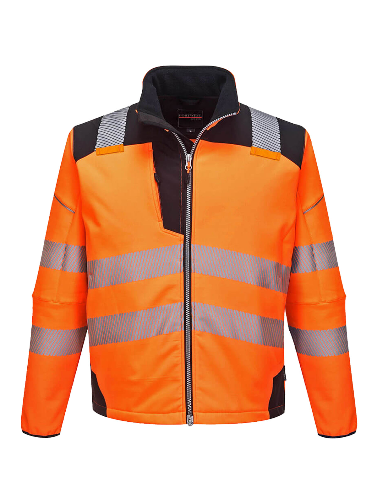 Banda riflettente segmentata termosaldata per maggiore visibilità, cinque ampie tasche e anello radio.