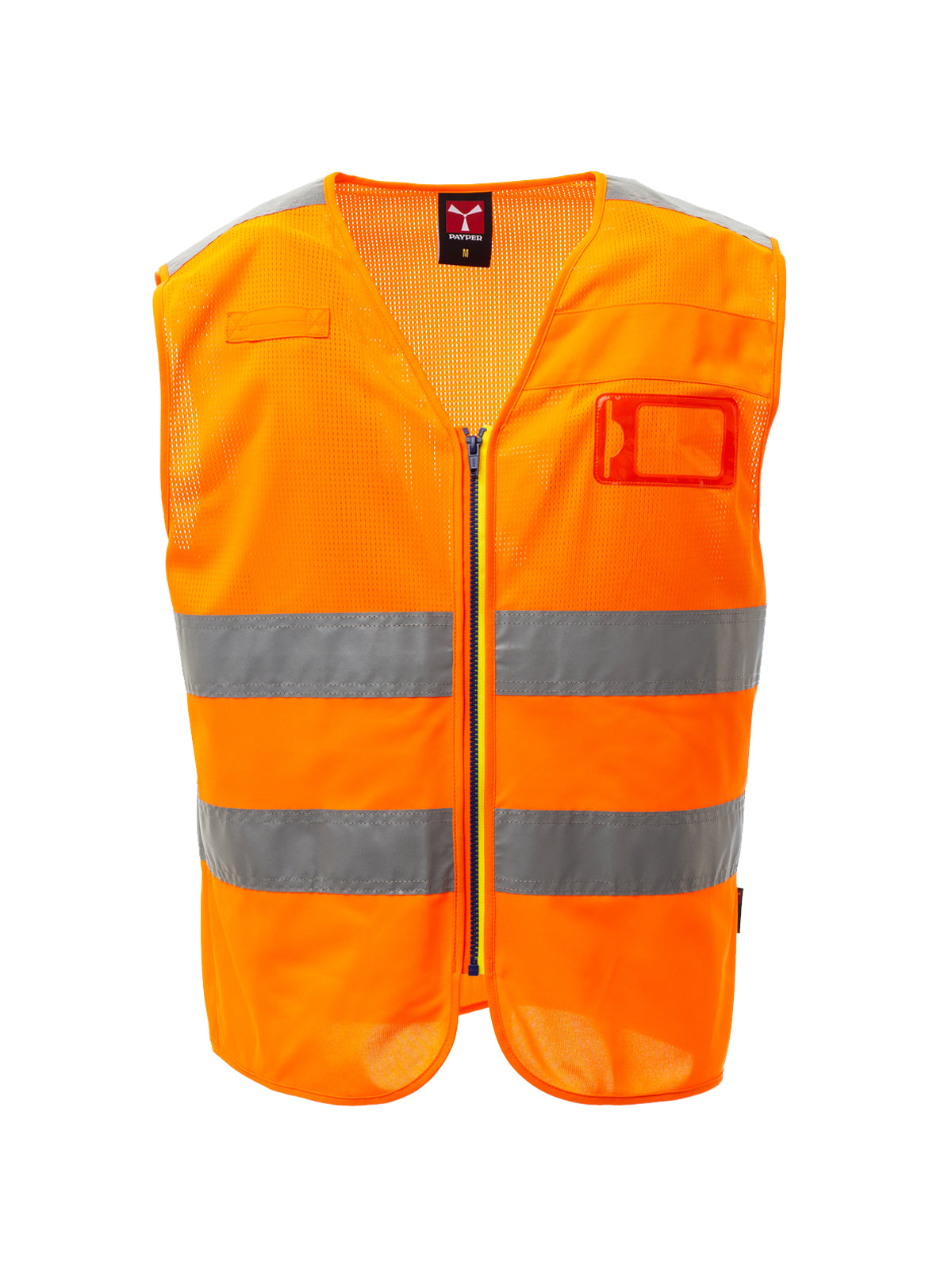 AccediGilet in alta visibilità realizzato in rete traspirante nella parte superiore e in tessuto dry-tech nella parte inferiore, con bande retroriflettenti sulla spalla e sul corpo. Chiusura con zip SBS, con nastro bicolore. Banda in tessuto dry-tech per personalizzazione e porta badge fisso su petto sinistro a capo indossato. Passante multifunzione su petto destro a capo indossato.