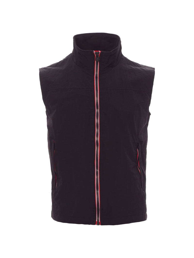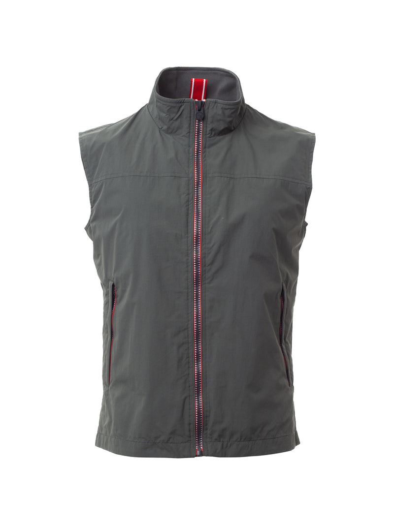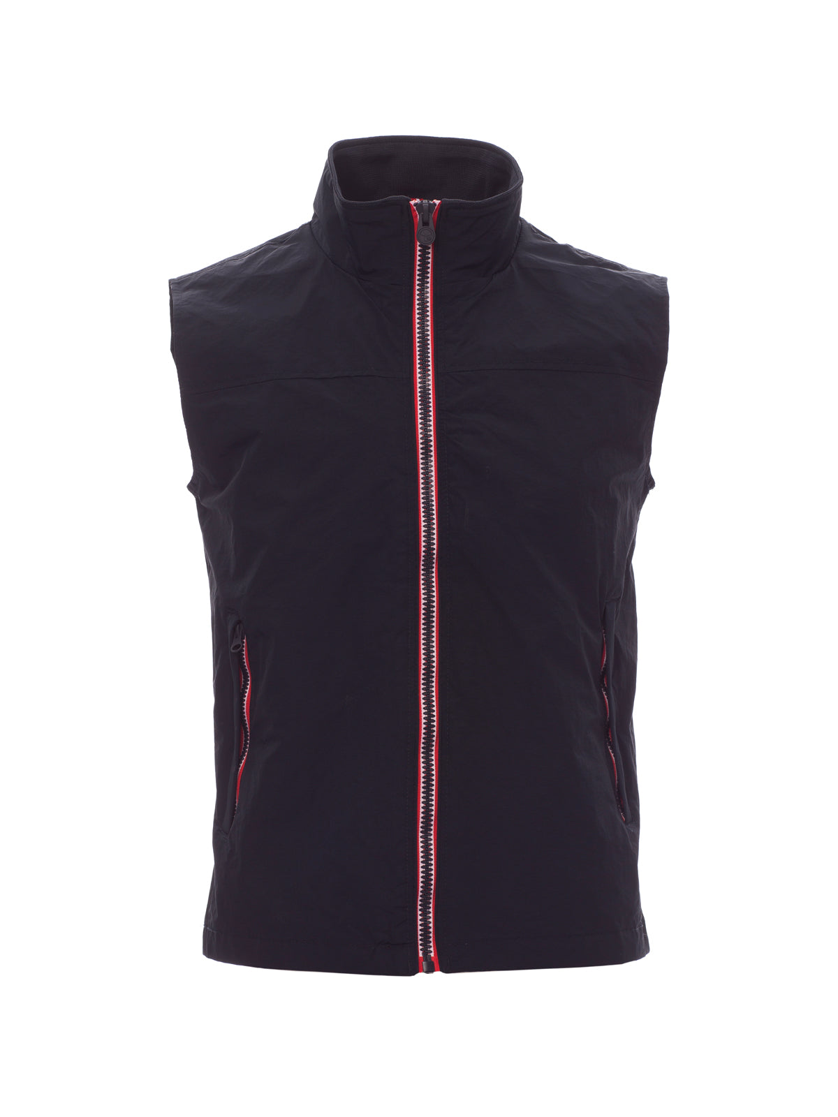 AccediGilet con zip da 8 mm a contrasto, due tasche esterne con zip coperta. Interno: non imbottito, retinato, una tasca con cerniera e predisposizione per cuffie e cavo smartphone zip al petto e sul fondo per agevolare stampe e ricami.