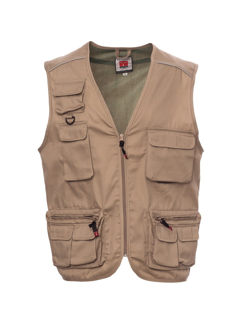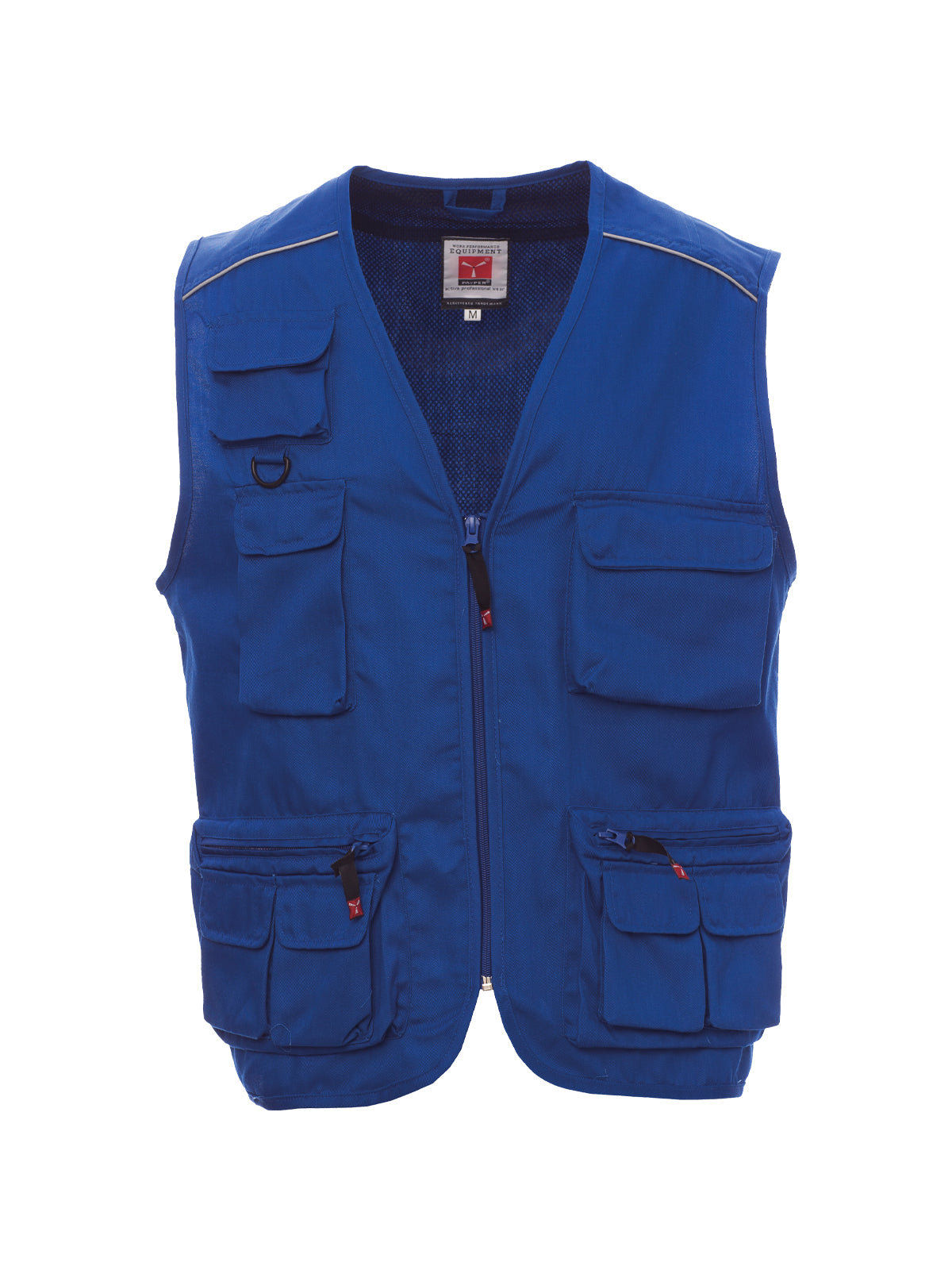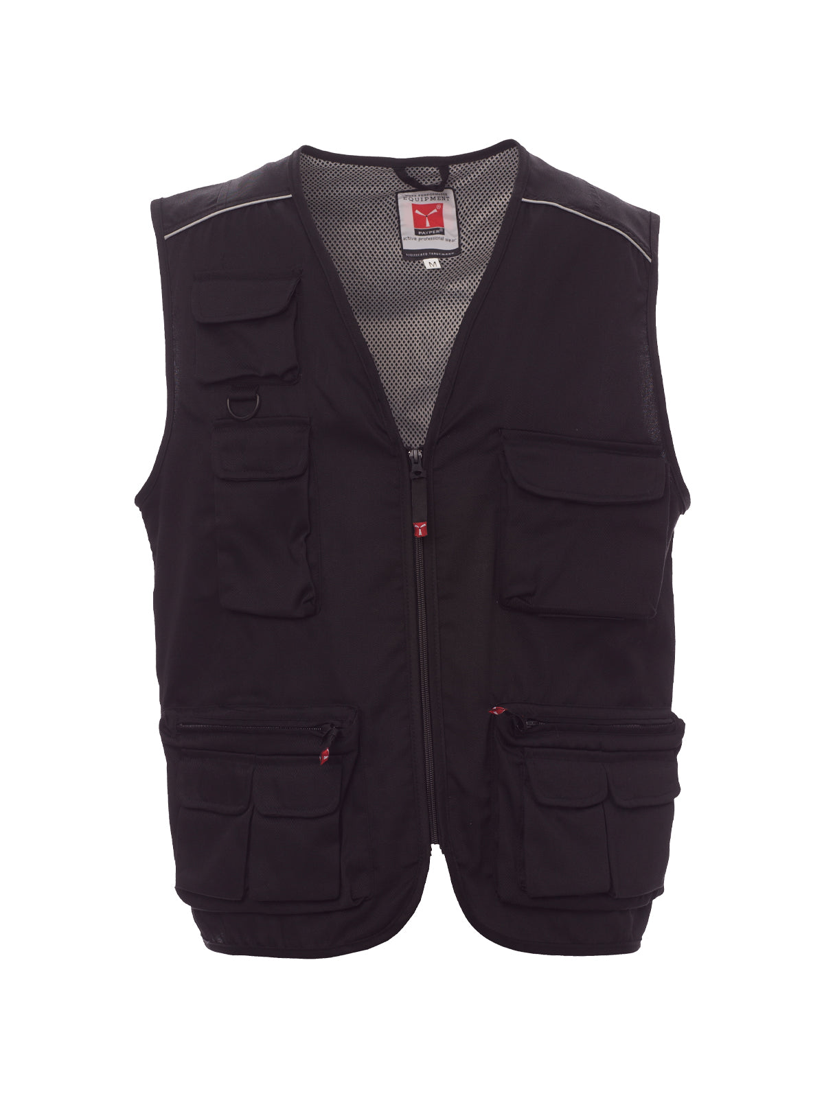 AccediGilet con zip, composizione multitasche frontale, tasca superiore sinistra con porta badge reversibile e dettaglio reflex, piping reflex alle spalle e schiena, ampia cacciatora posteriore. Interno: fodera in dry-tech, in colore a contrasto, aperta per agevolare stampe e ricami.