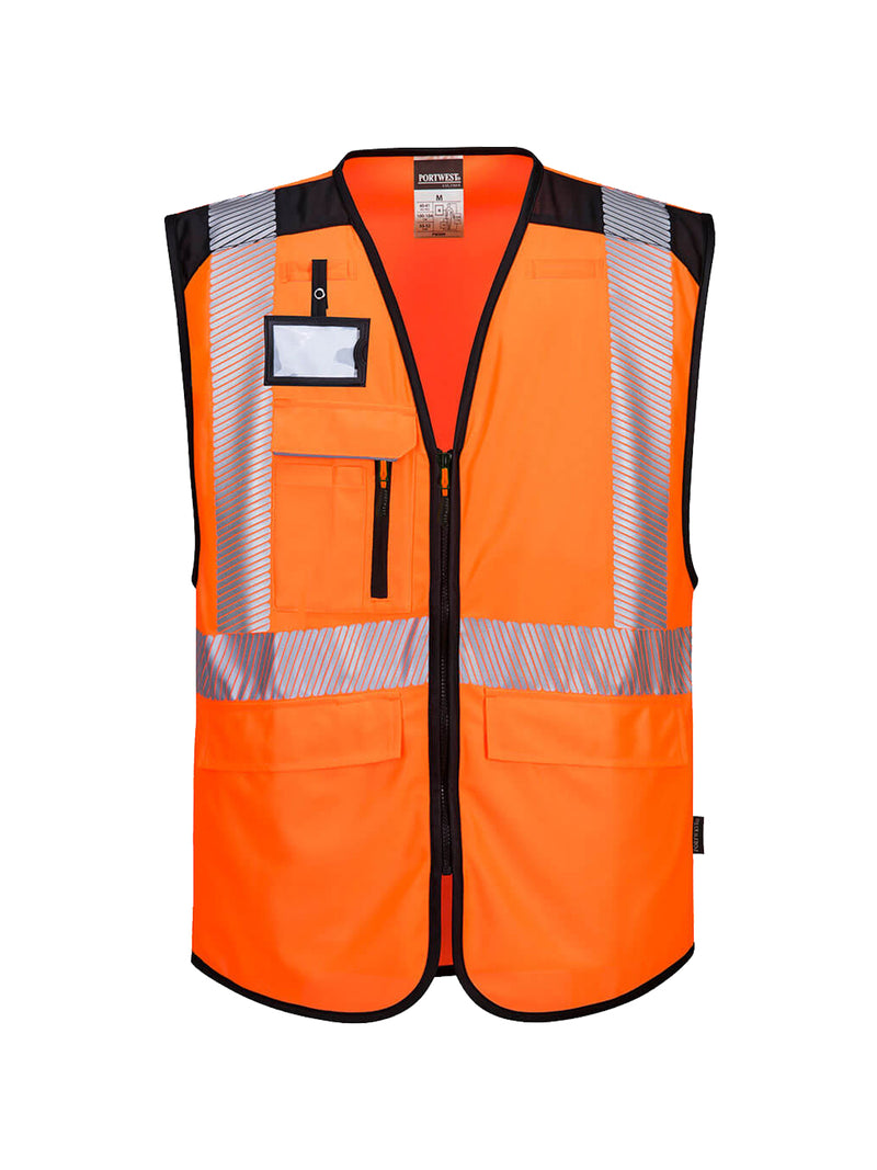AccediGilet leggero e confortevole con apertura frontale con zip. Una tasca sul petto, tasca portapenne e tasche inferiori. D-Ring per chiavi o ID Card e banda riflettente termosaldata per una maggiore visibilità. Una tasca trasparente e staccabile per i pass di sicurezza e i badge.