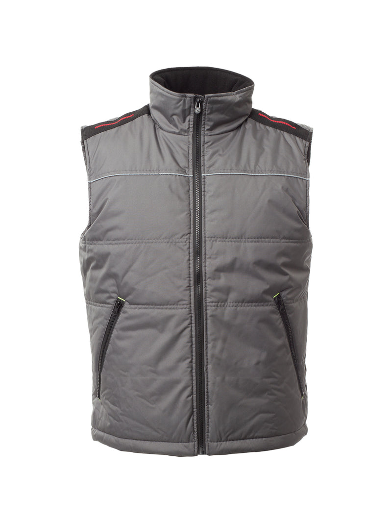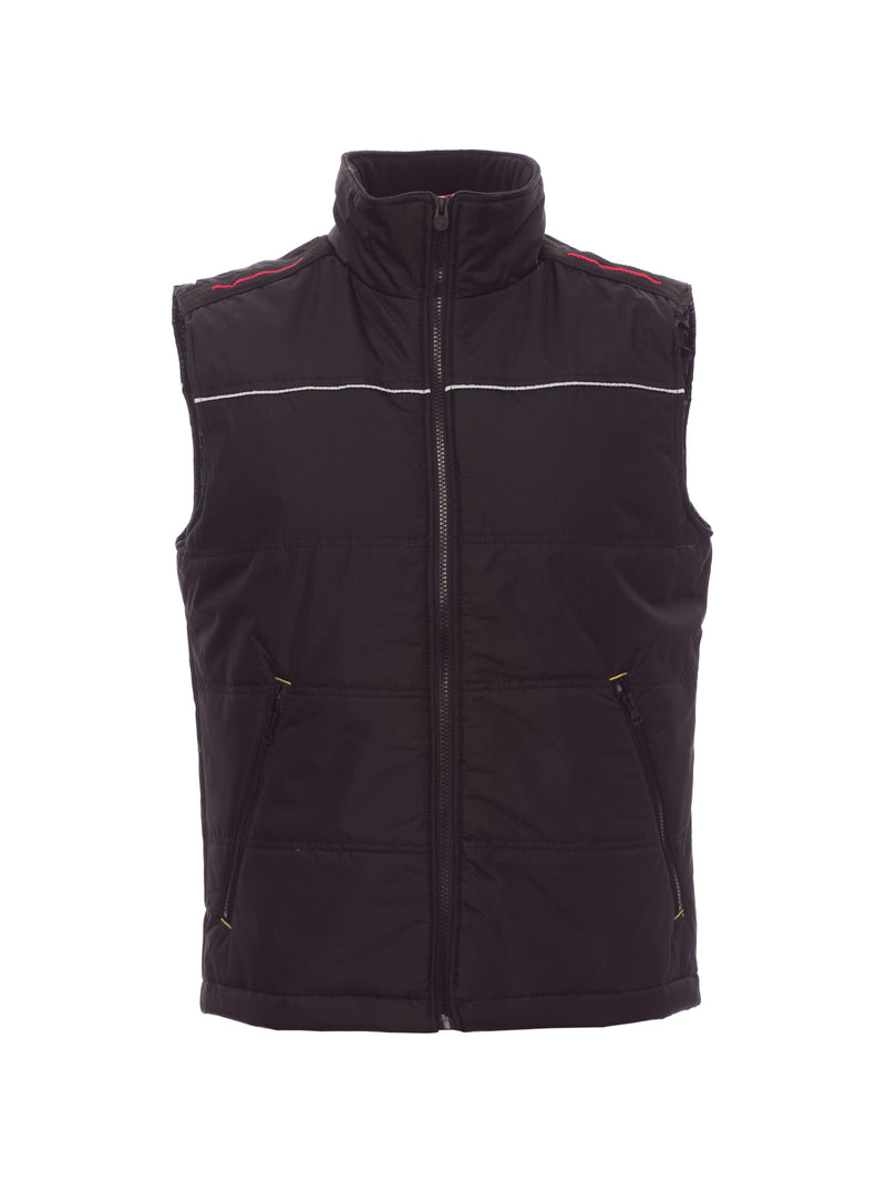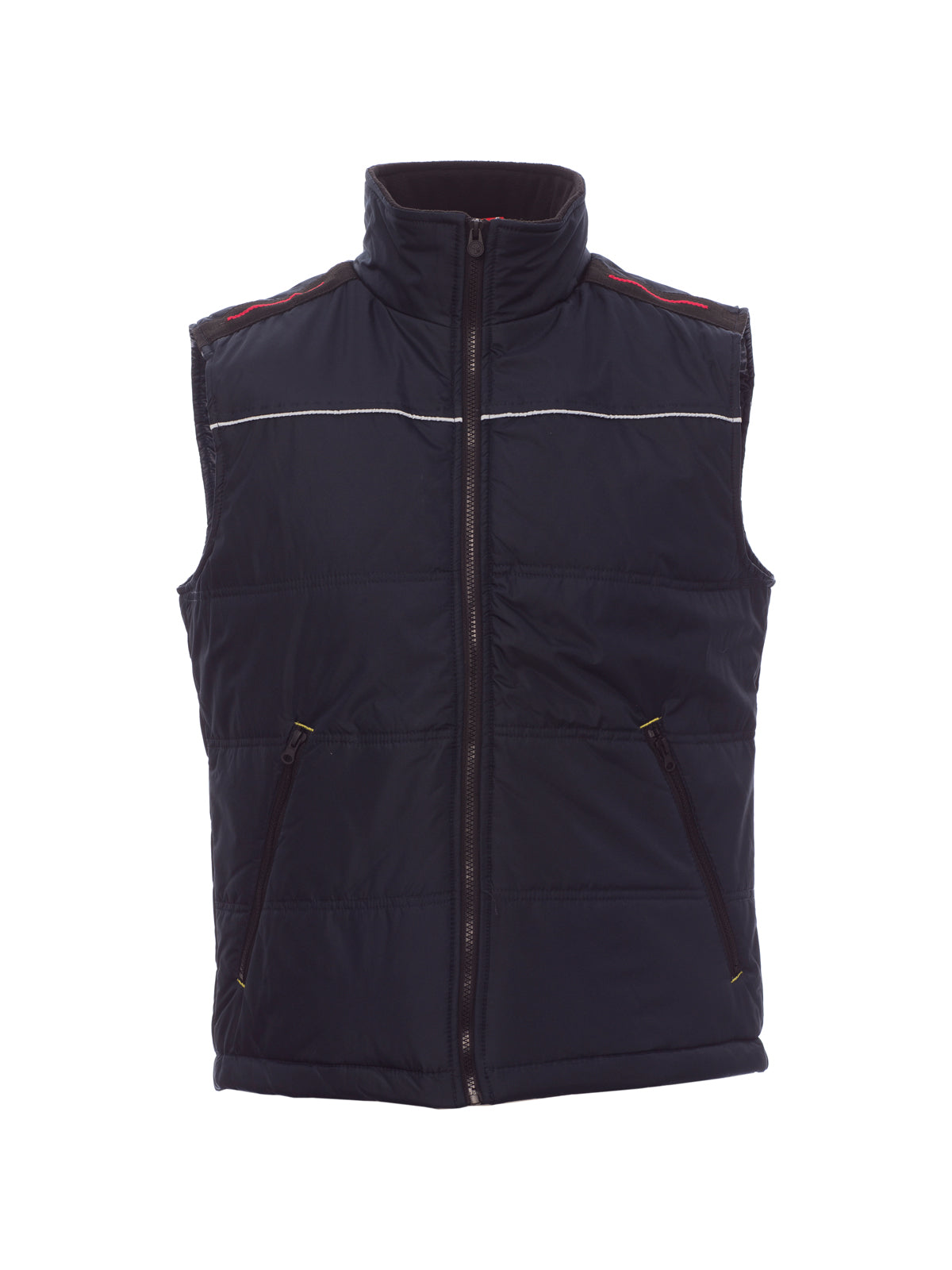 AccediGilet con zip 5mm in plastica con cursore in metallo, retro sagomato, due ampie tasche esterne con zip, piping reflex al petto e sulla schiena. Interno: imbottitura trapuntata e rifinita con fodera ad alta densità, interno colletto in pile, una tasca.