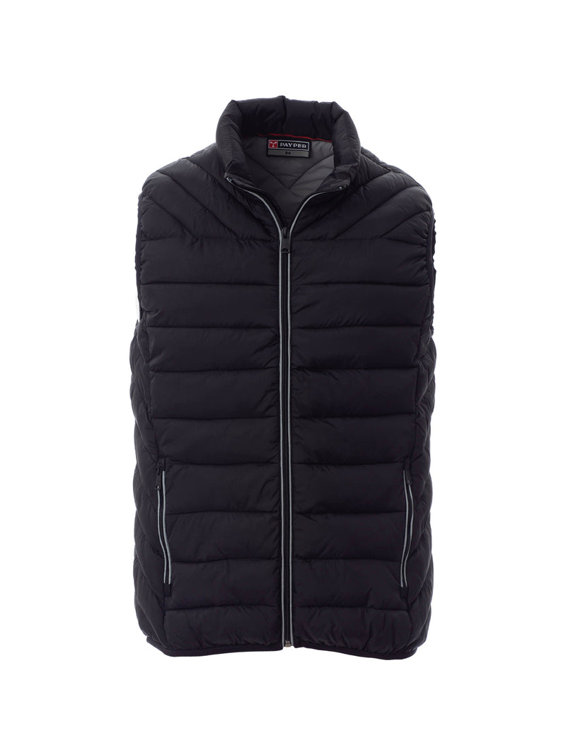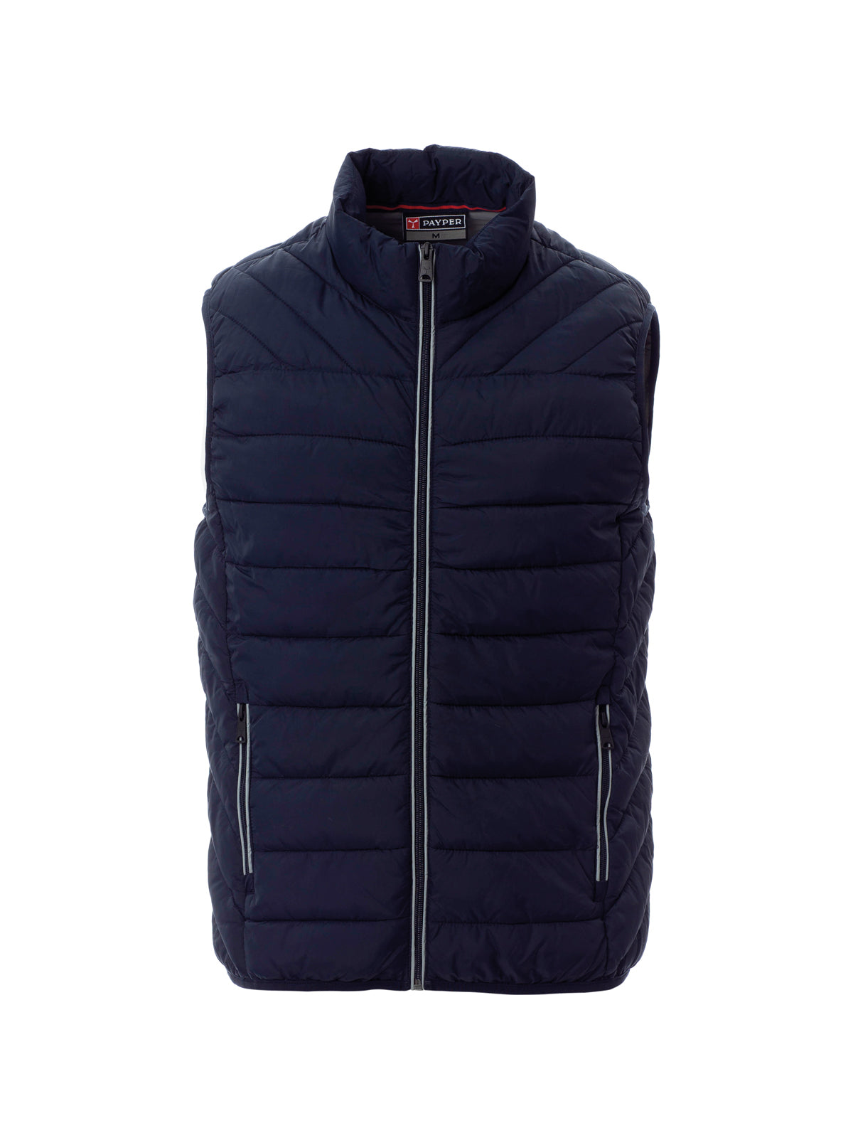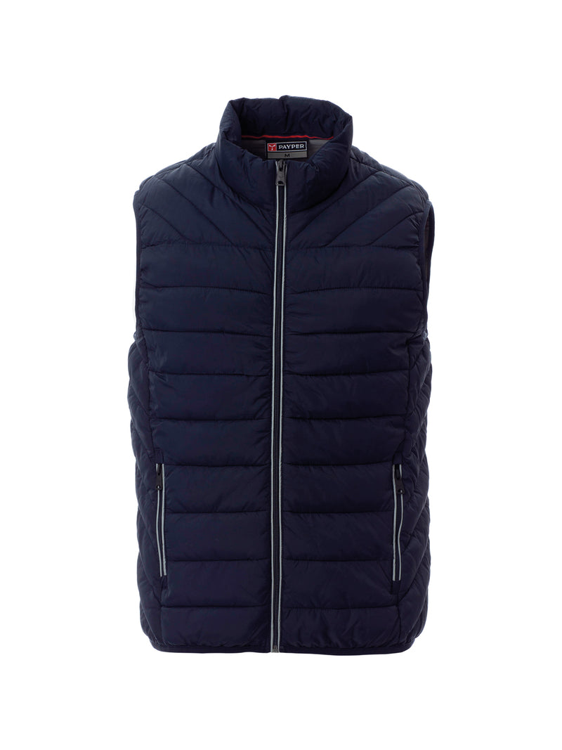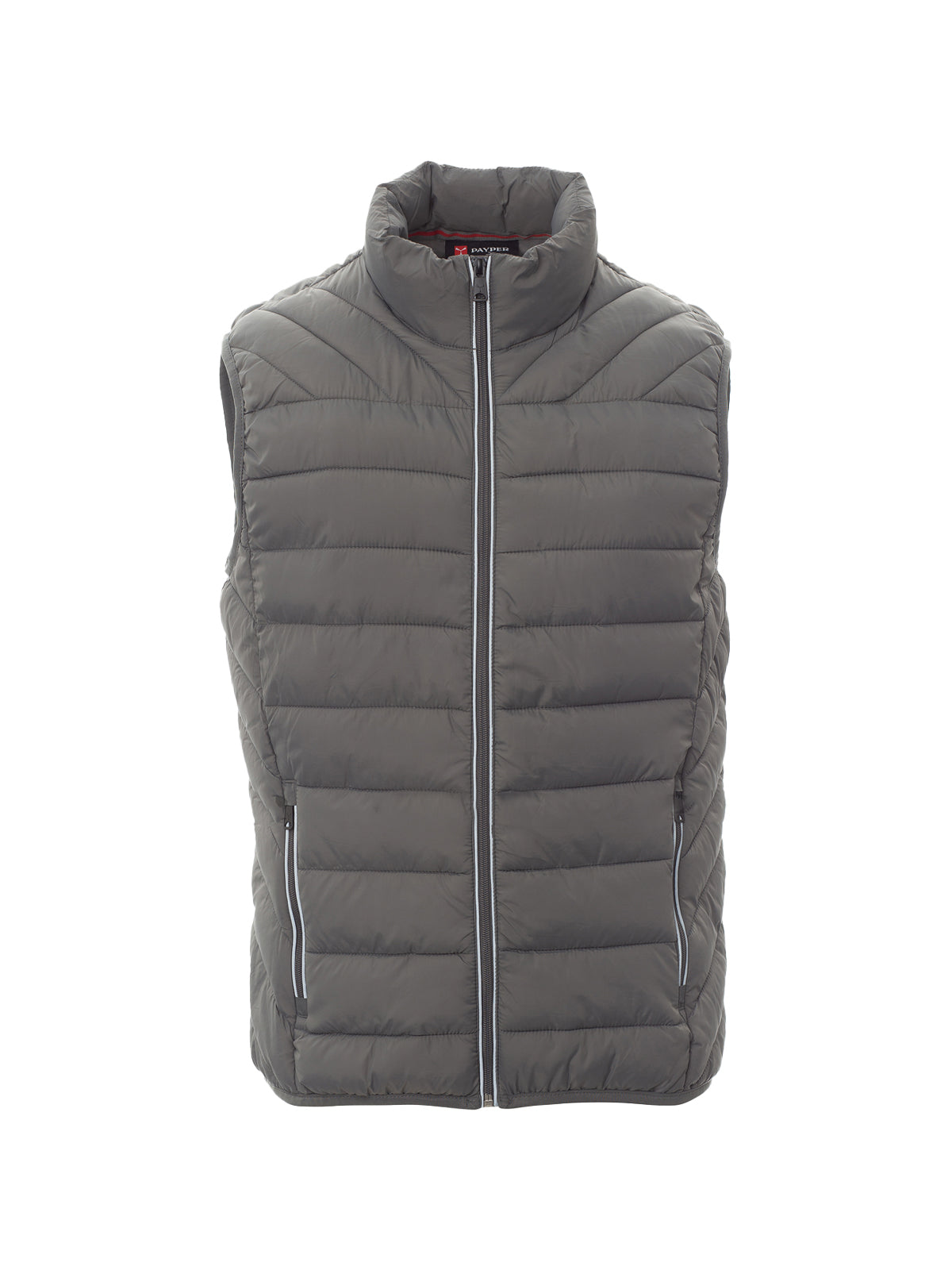 AccediGilet/piumino con zip 5mm in plastica con cursore in metallo, fine bordino in vita, due tasche esterne. Interno: imbottito di poliestere effetto piuma, due tasche.