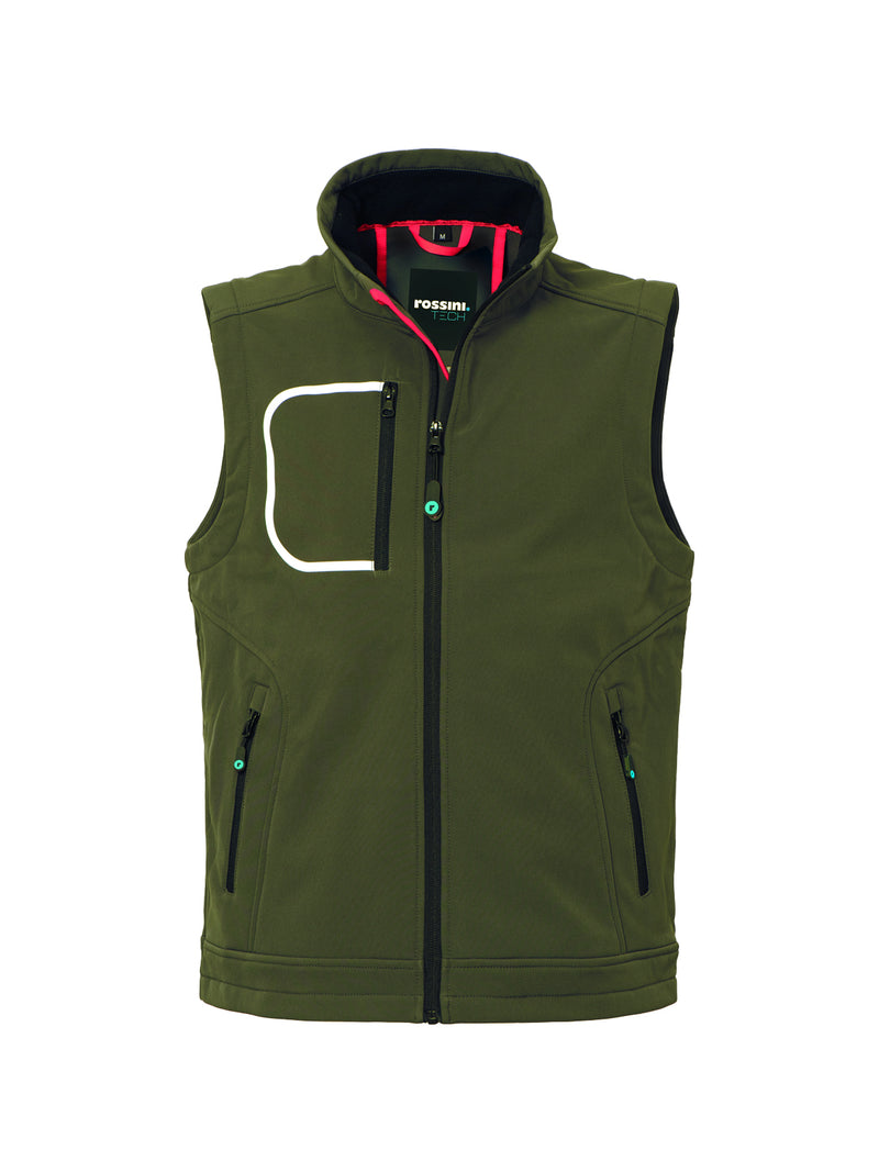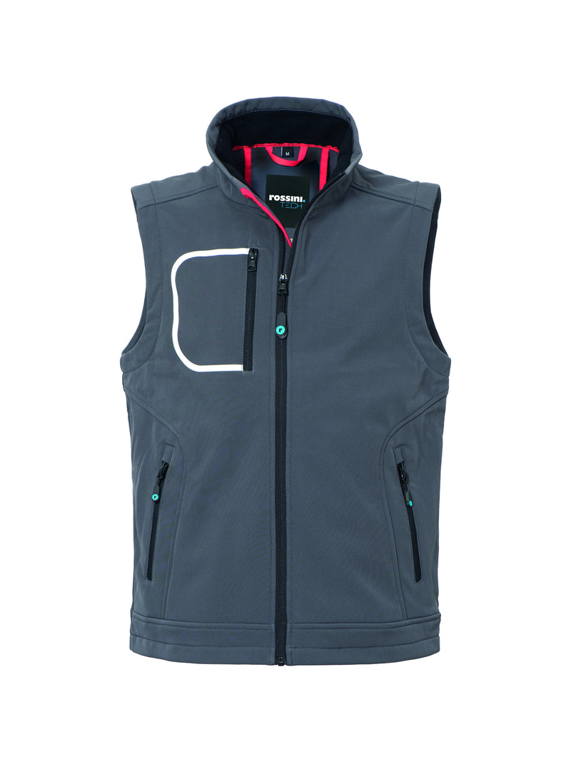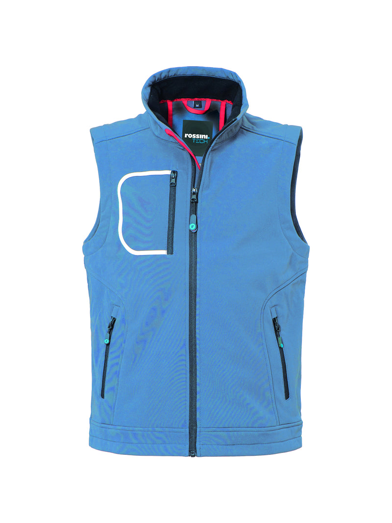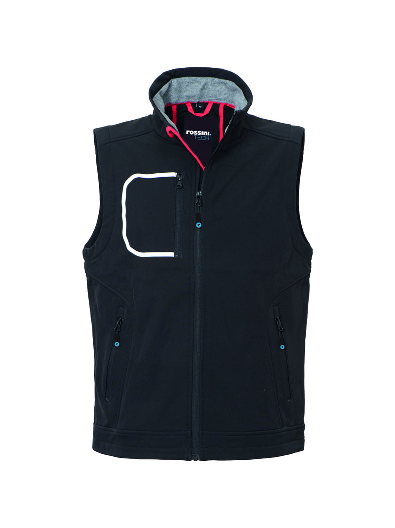 AccediGilet realizzato in tessuto Softshell a tre strati, chiusura con zip centrale, foro di aerazione sulla schiena.