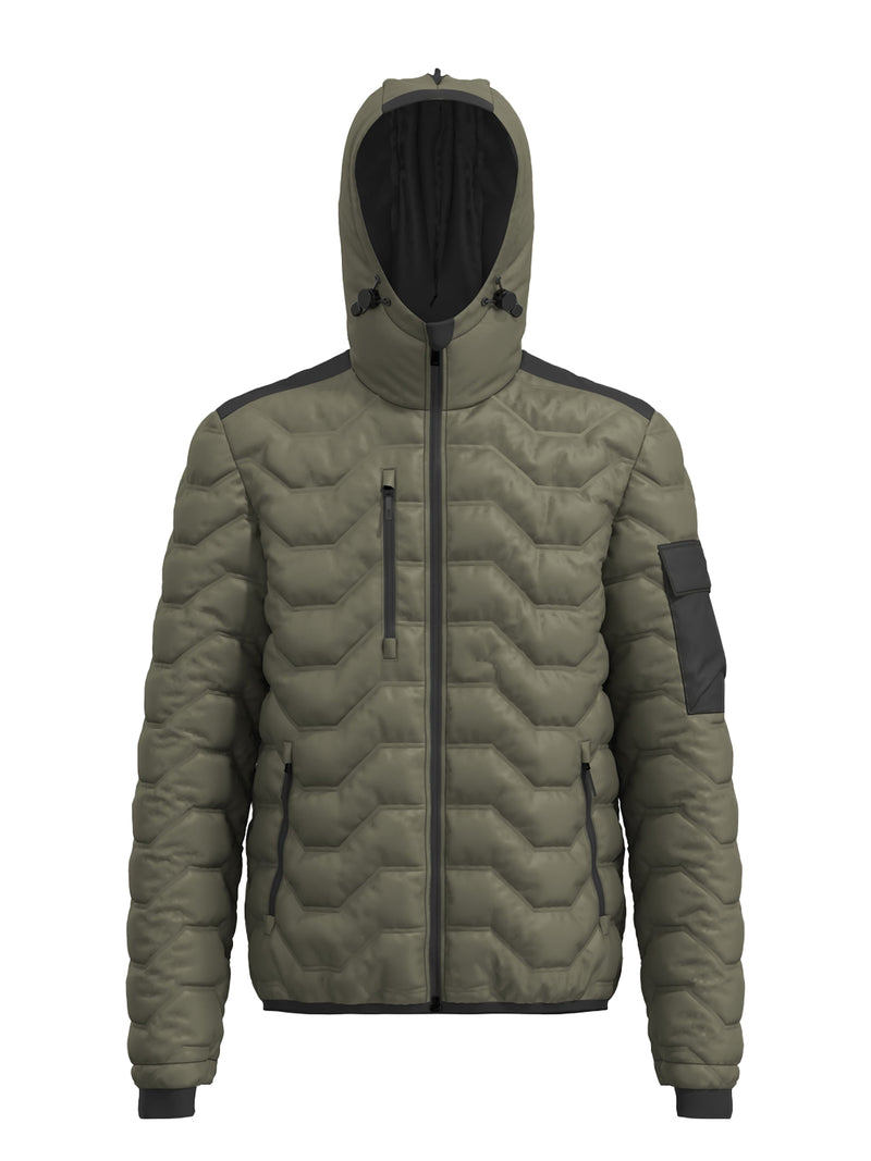 Il cappuccio fisso, regolabile e ampliabile tramite zip, offre una protezione aggiuntiva, mentre i dettagli antivento migliorano la tenuta contro le intemperie.