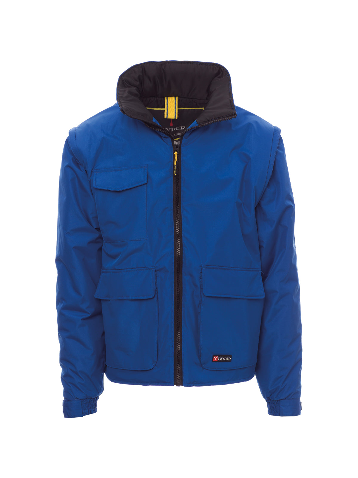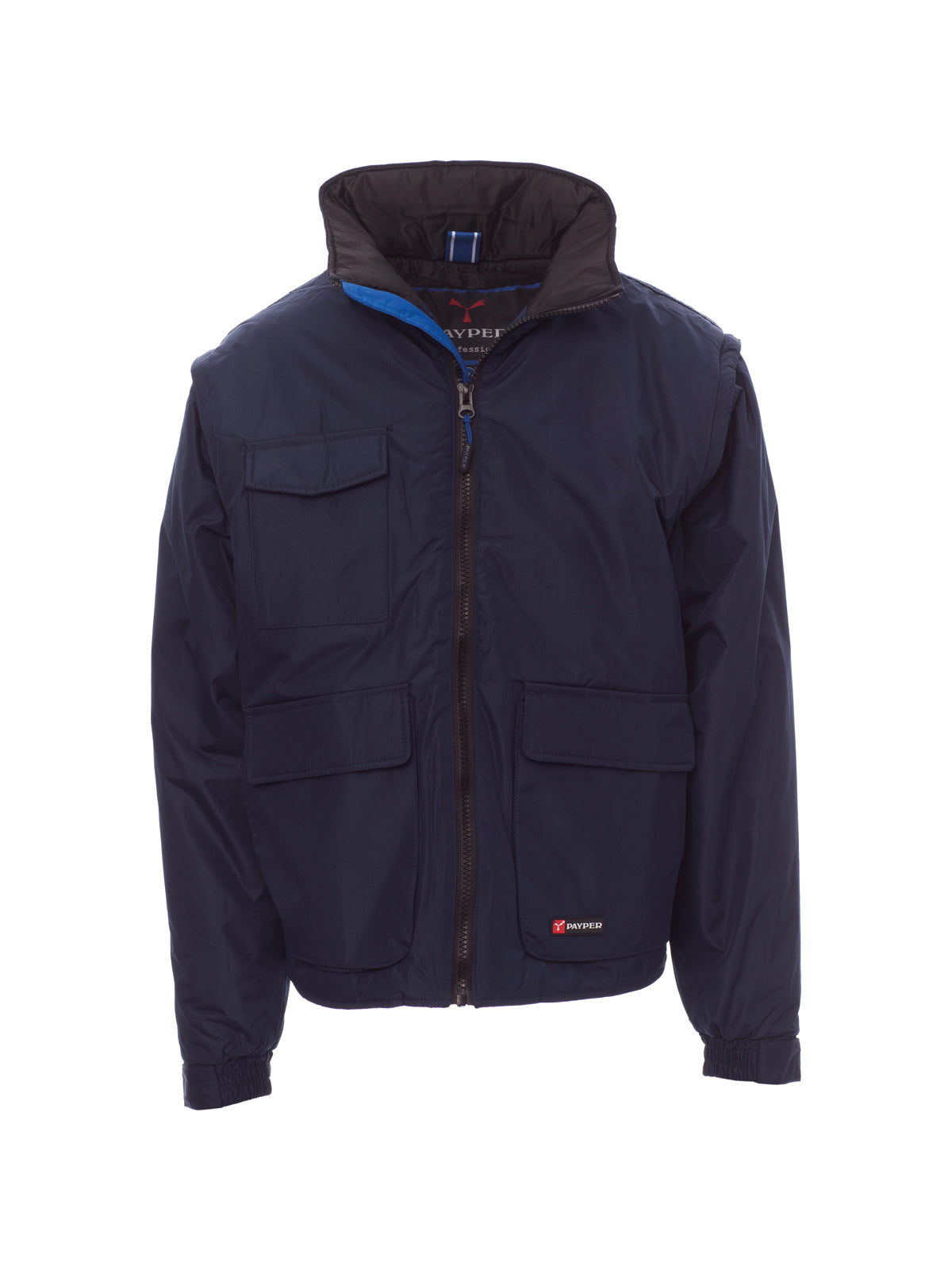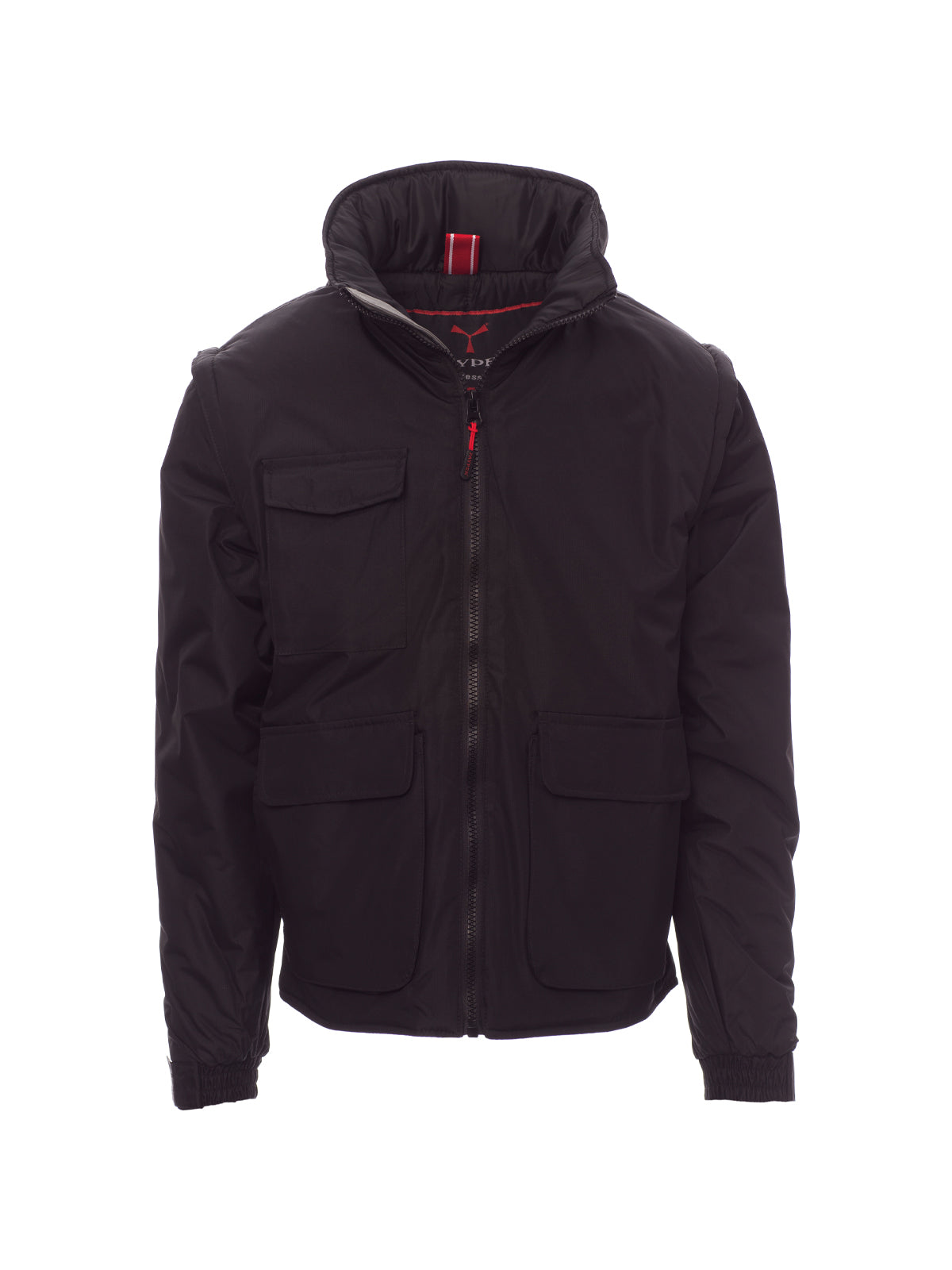 AccediGiubbotto con maniche staccabili, zip 8 mm in plastica con cursore in metallo, cappuccio richiudibile nel colletto, elastico e stringi polsi, due ampie tasche frontali LOCK SYSTEM, due tasche laterali, porta smartphone al petto. Interno: imbottito, zip per agevolare stampe e ricami.