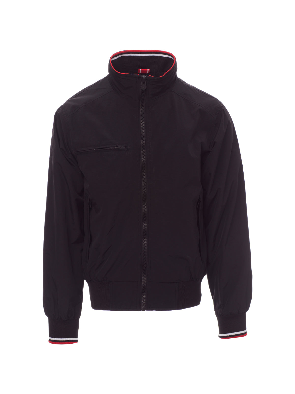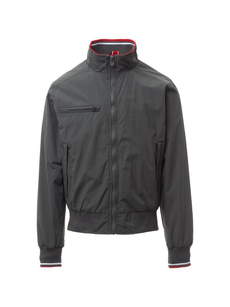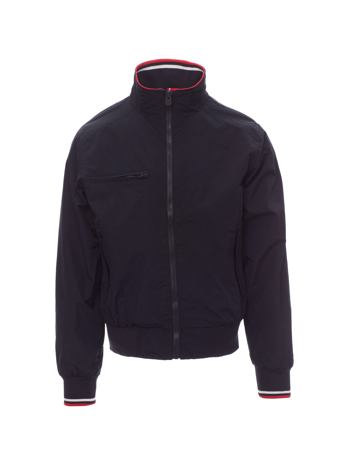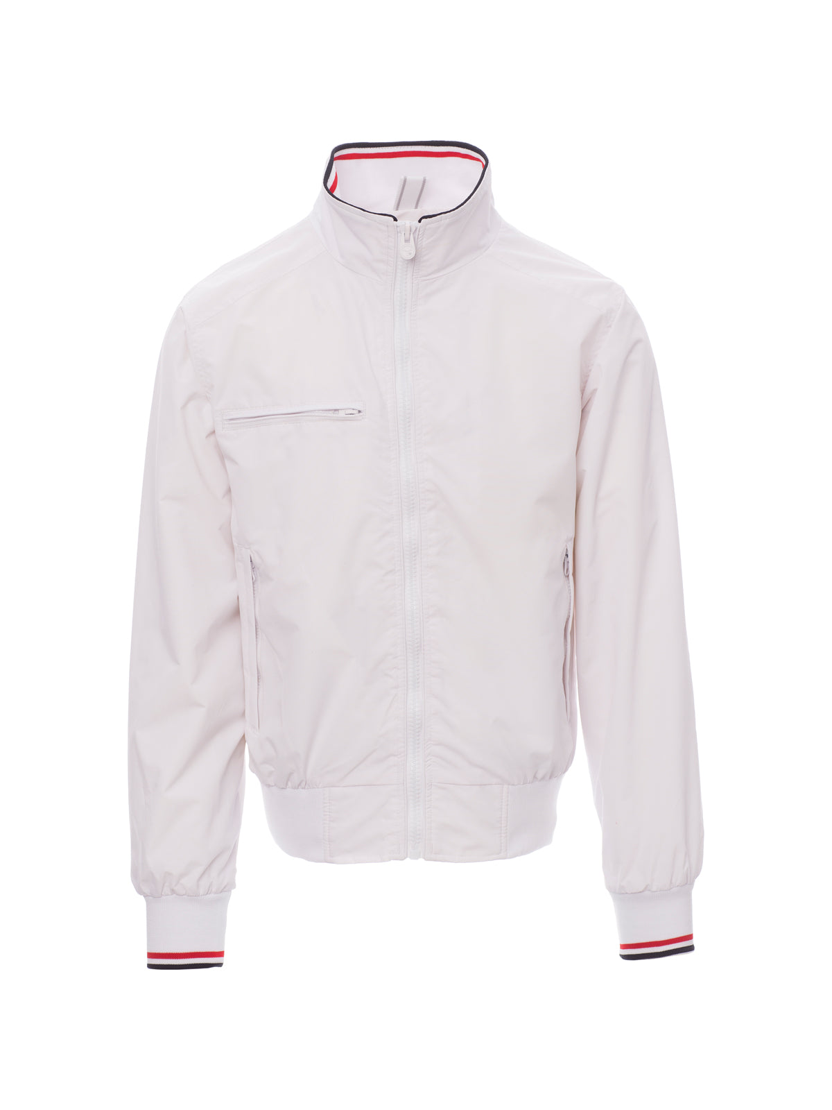 AccediGiubbotto con zip da 8mm, in plastica con cursore in metallo, con colletto, polsini e vita in rib elasticizzato con righe, due tasche esterne con zip in plastica. Interno non imbottito, retinato, una tasca con cerniera porta smartphone con predisposizione per cavo, zip al petto e schiena per agevolare stampe e ricami.