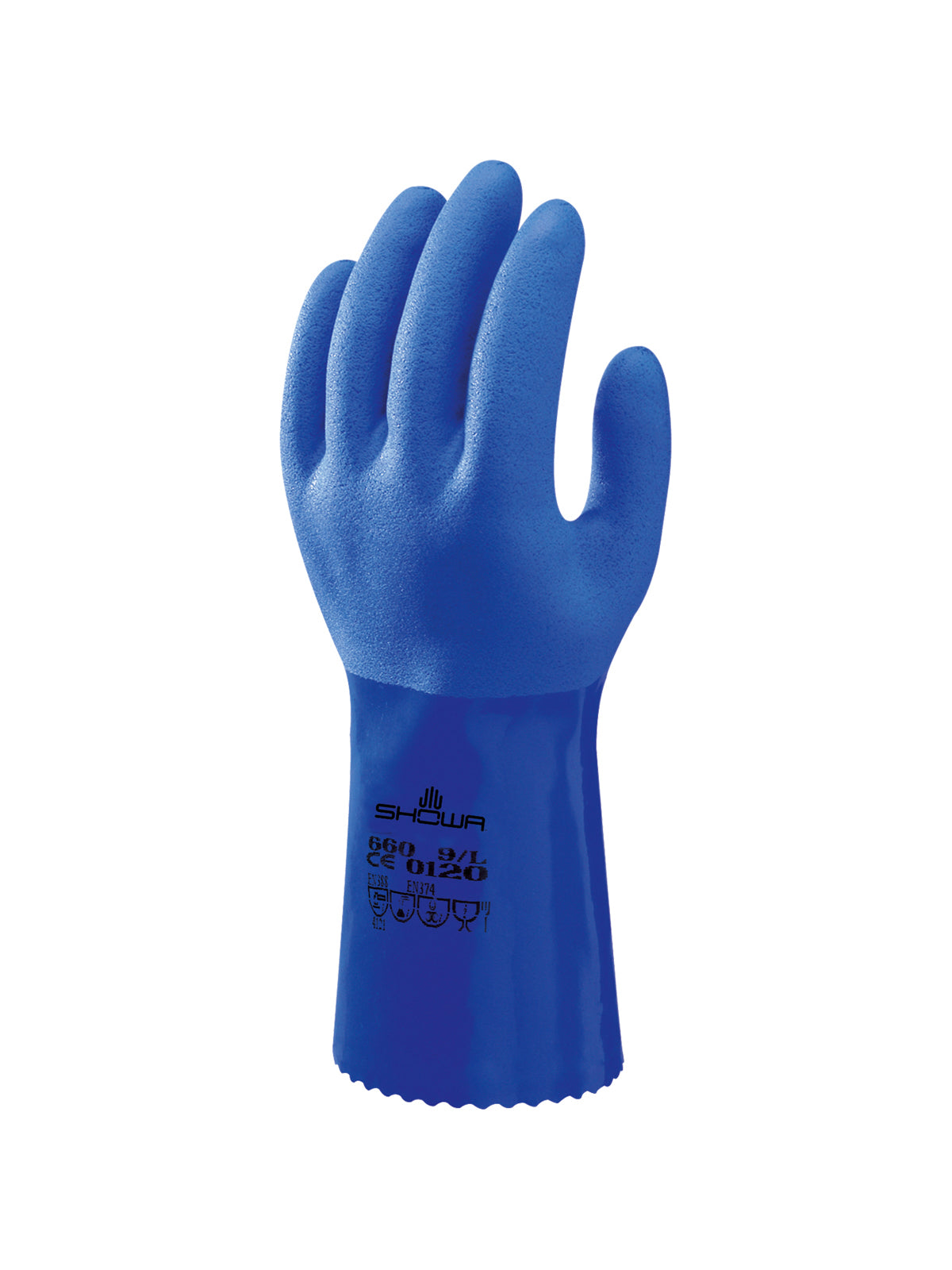 Guanto lavorato a maglia con rivestimento in PVC a triplo strato e finitura ruvida e fodera in cotone morbido.