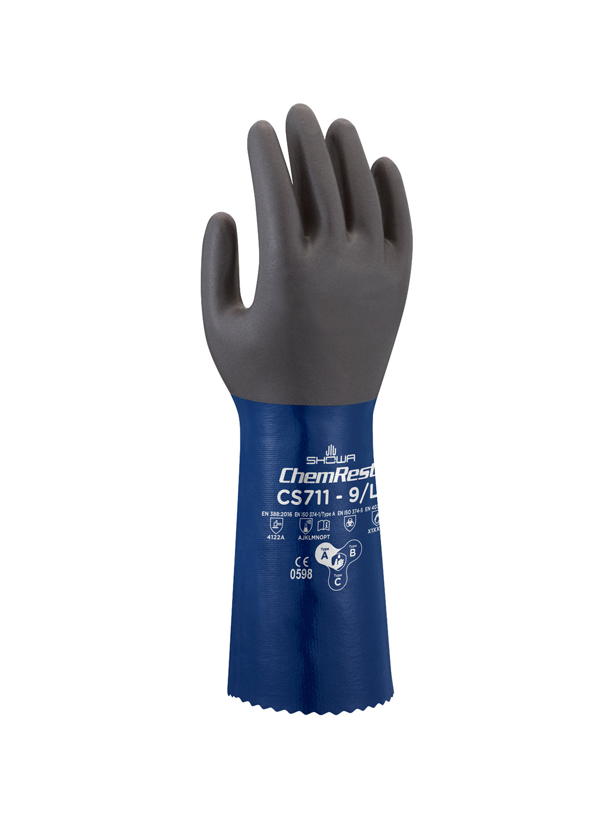 Guanto lavorato a maglia con rivestimento in nitrile microporoso e fodera in poliestere.