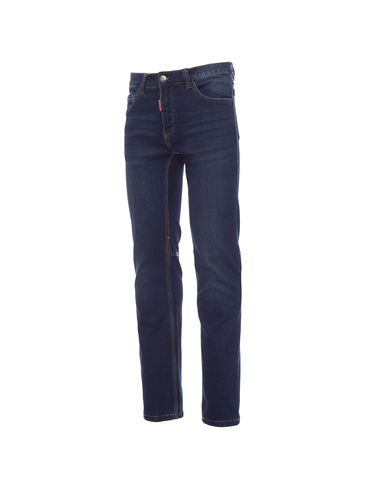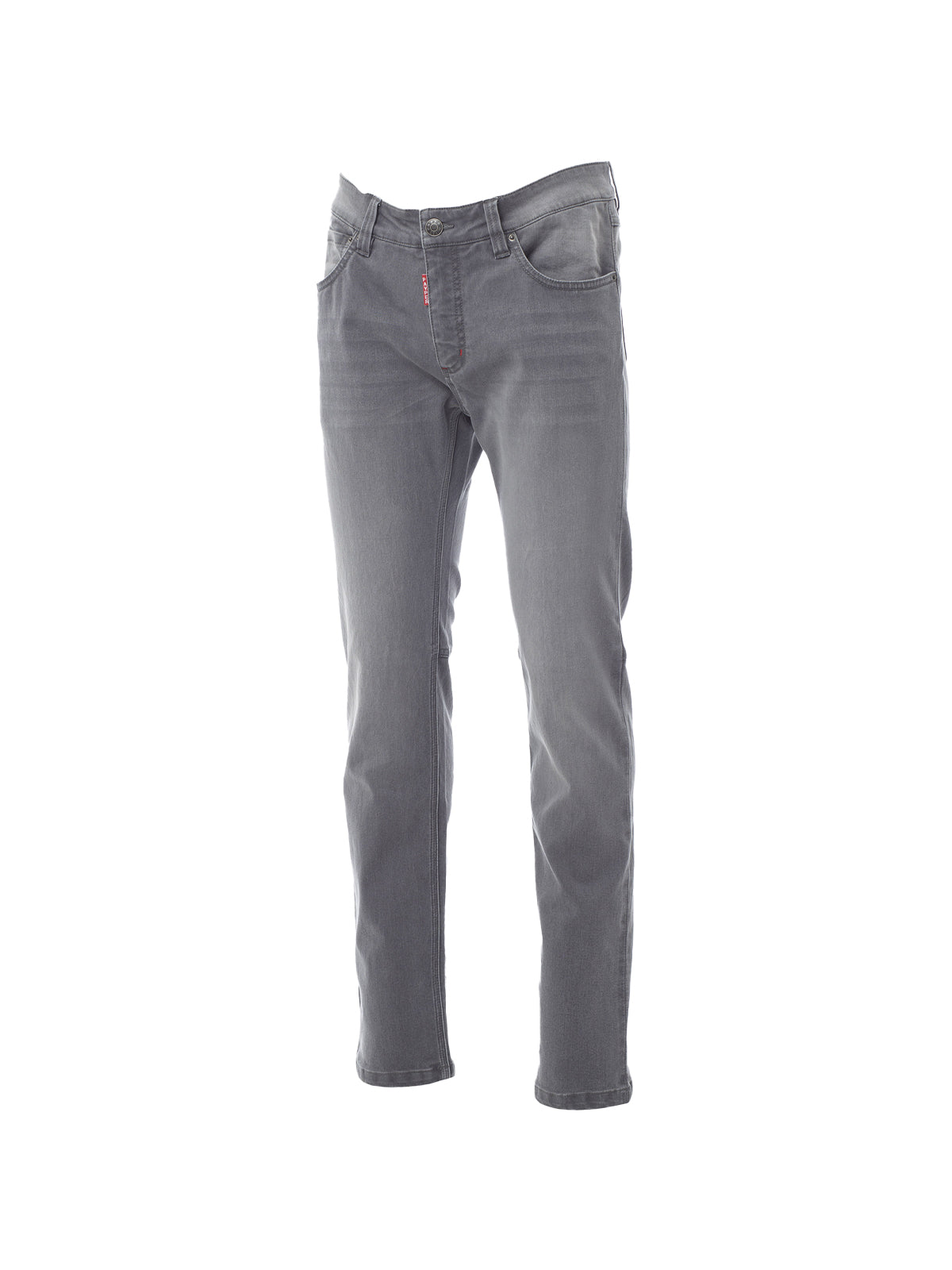 AccediPantalone uomo, taglio jeans a cinque tasche, chiusura con zip in metallo e bottone, passanti in vita, 1 porta metro a scomparsa, 1 taschino porta penne e cutter, trattamento stone wash effetto consumato e délavé. Gamba a tubo, cuciture filo grosso a contrasto ed a triplo ago interno gamba.