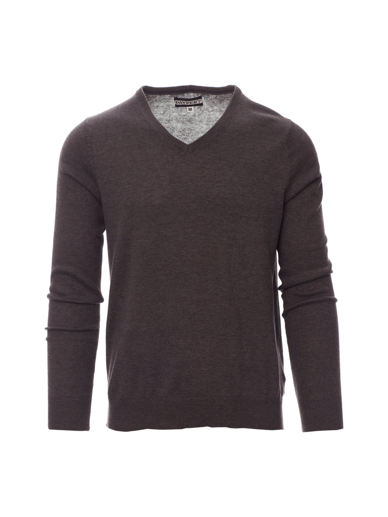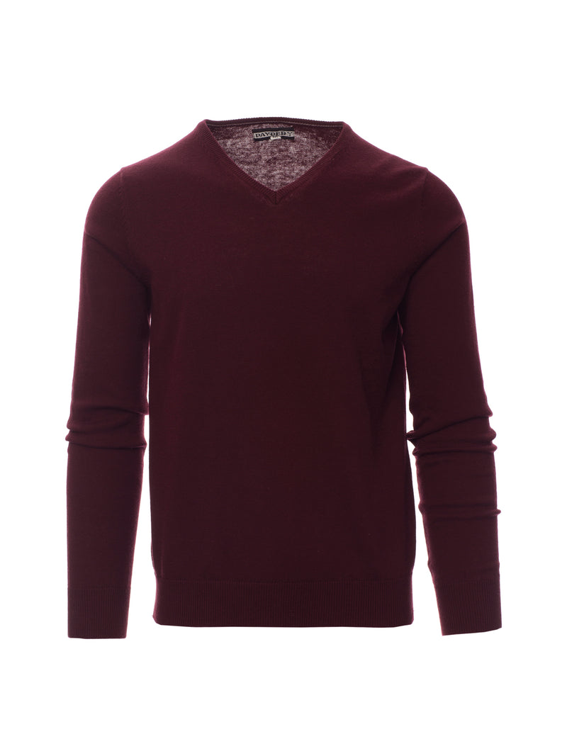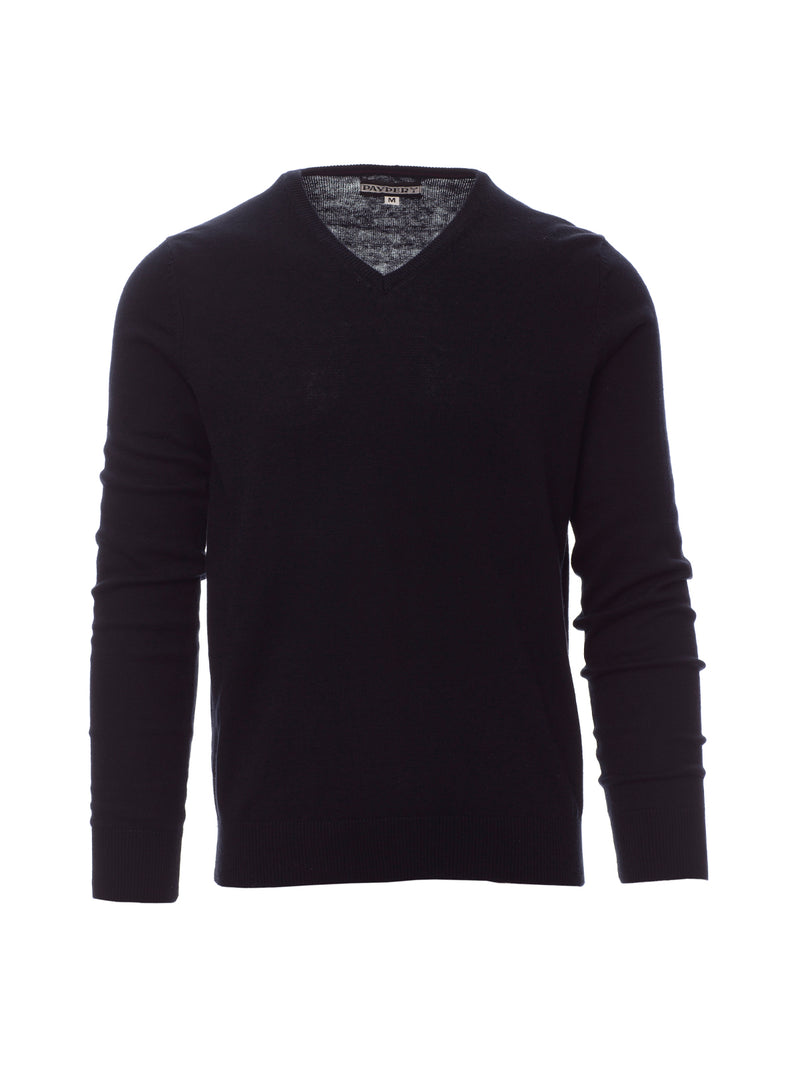 AccediCon scollo a V, lavorazione a punto rasato fine, confezione a maglia calata senza cuciture, costine fini per il bordino collo, per i polsi e i bordi inferiori.