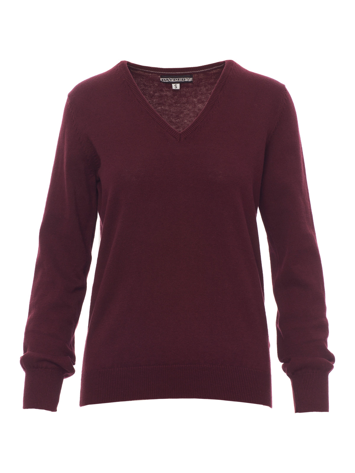AccediMaglioncino da donna con scollo a V, realizzato con una lavorazione a punto rasato fine per un aspetto elegante e leggero. La confezione a maglia calata senza cuciture garantisce una vestibilità fluida e comoda. Le costine fini sui bordi del collo, dei polsini e sul bordo inferiore donano un tocco raffinato e dettagli curati.
