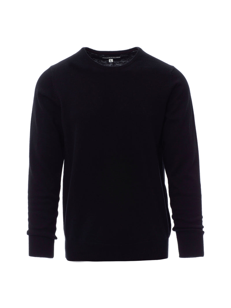 AccediMaglioncino girocollo, lavorazione a punto rasato fine, confezione a maglia calata senza cuciture, costine fini per il bordino collo, per i polsi e i bordi inferiori.