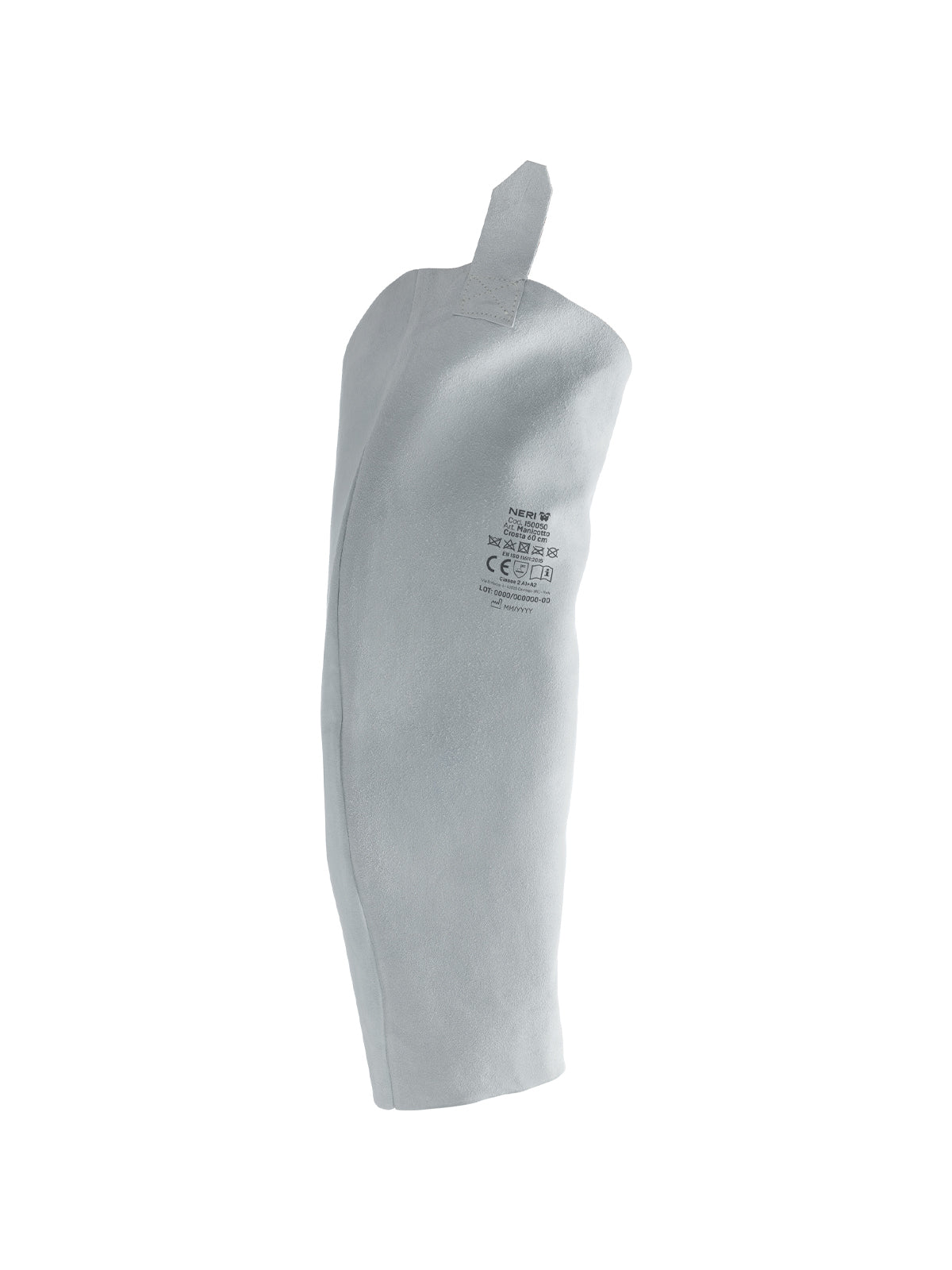 AccediManicotto protettivo per saldatura in pelle crosta di prima qualità, con cuciture in filo di Kevlar® resistente al calore e allo strappo.