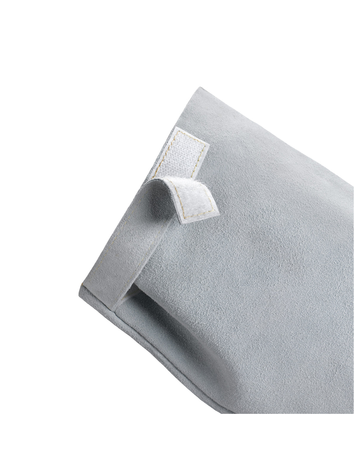 AccediPer la protezione delle braccia durante i lavori di saldatura. Questo modello è stato reso più confortevole, inserendo sul bordo superiore una chiusura a strappo che permette di regolarlo, impedendogli di scivolare sul braccio. Il polso elastico lo rende più aderente per una maggiore sicurezza.