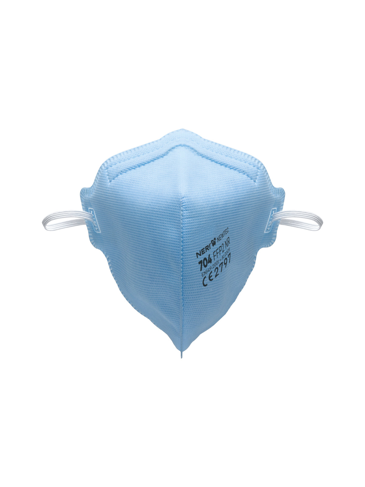 Mascherina FFP2 NR pieghevole in tessuto non tessuto, leggera e comoda da indossare, confezionata singolarmente per essere facilmente portata sempre con sé. Dotata di un ponte nasale invisibile e morbida guarnizione per una tenuta ottimale, senza esposizione a metallo. Gli elastici anallergici, latex-free e regolabili con fibbia in polipropilene offrono un comfort personalizzato. Protegge contro aerosol solidi e liquidi a bassa tossicità, fino a 12 volte il limite di esposizione. Adatta per proteggere da polveri e fumi di materiali come cemento, legno, metalli ferrosi, batteri e funghi. Peso: circa 8 g, colore azzurro. Confezionata singolarmente in busta trasparente. Prima dell’uso, consultare un esperto di sicurezza sul lavoro per verificarne l'idoneità.