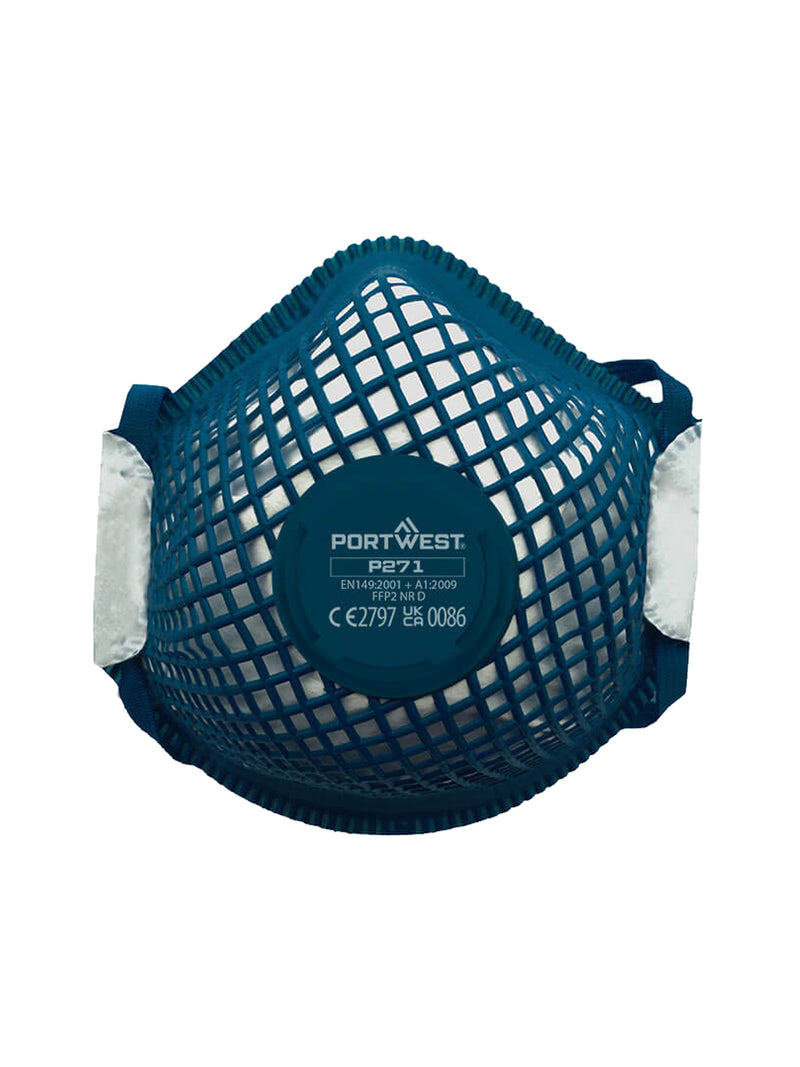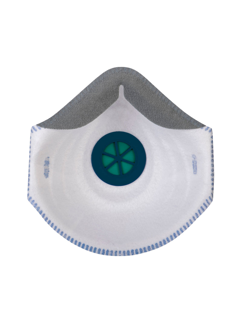 Mascherina FFP3 ergonomica con rete esterna Ergonet per proteggere e mantenere la forma, e senza parti metalliche. Le fasce elastiche regolabili assicurano una calzata comoda, mentre la valvola riduce il calore all'interno, migliorando il comfort in ambienti caldi e umidi. Il ponte nasale morbido e l'imbottitura in schiuma EVA aumentano il comfort. Non magnetica, esente da nichel e ferro, e testata per una bassa resistenza respiratoria grazie al test opzionale di saturazione alla polvere di Dolomite. Certificata CE-CAT III, confezionata singolarmente per presentazione in negozio. Materiali: polipropilene e schiuma EVA.