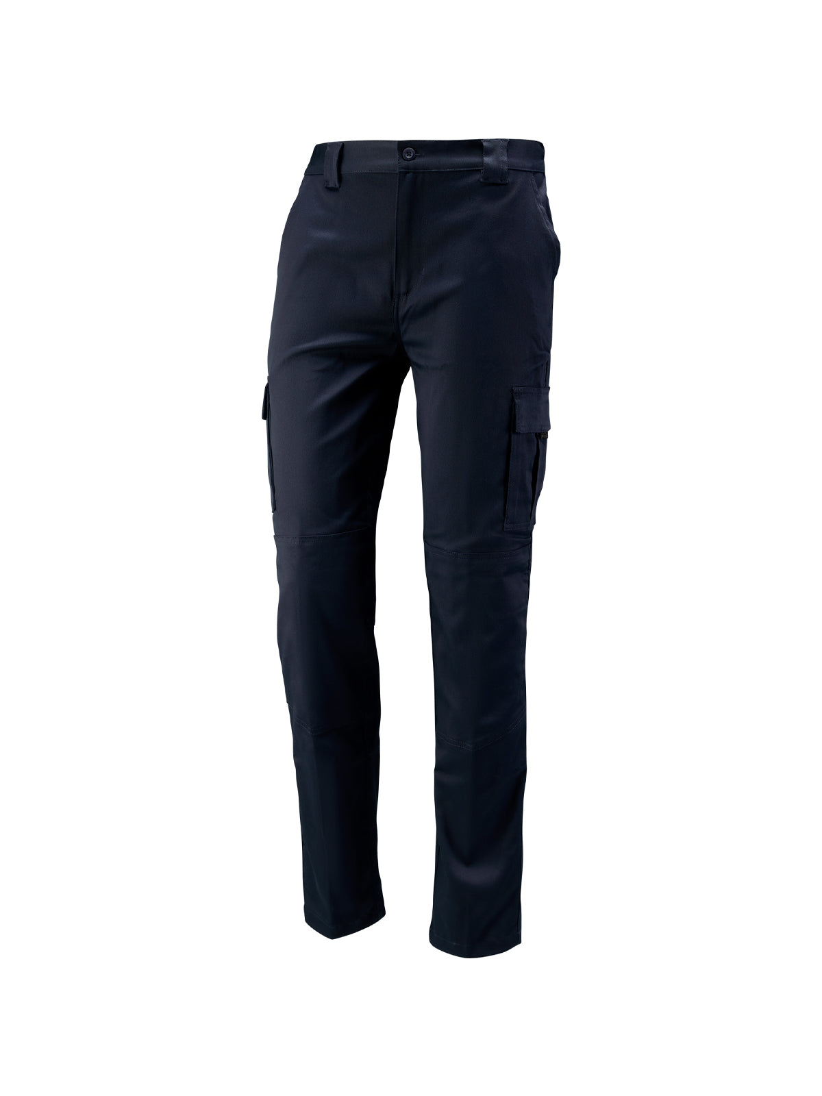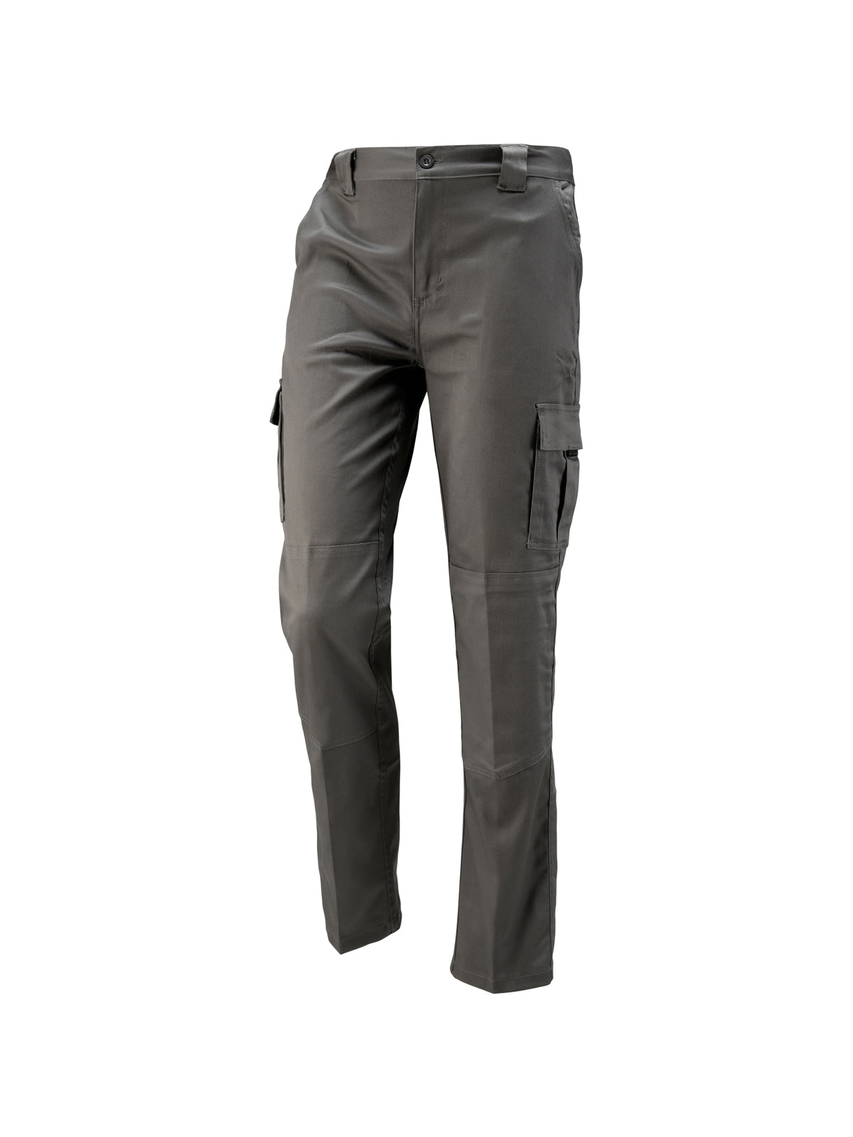 Le ginocchia rinforzate in doppio tessuto garantiscono una maggiore durata nel tempo, mentre le numerose tasche – due frontali, due cargo laterali e due posteriori con patta irregolare e chiusura in simil velcro – assicurano praticità e spazio per gli utensili da lavoro.
